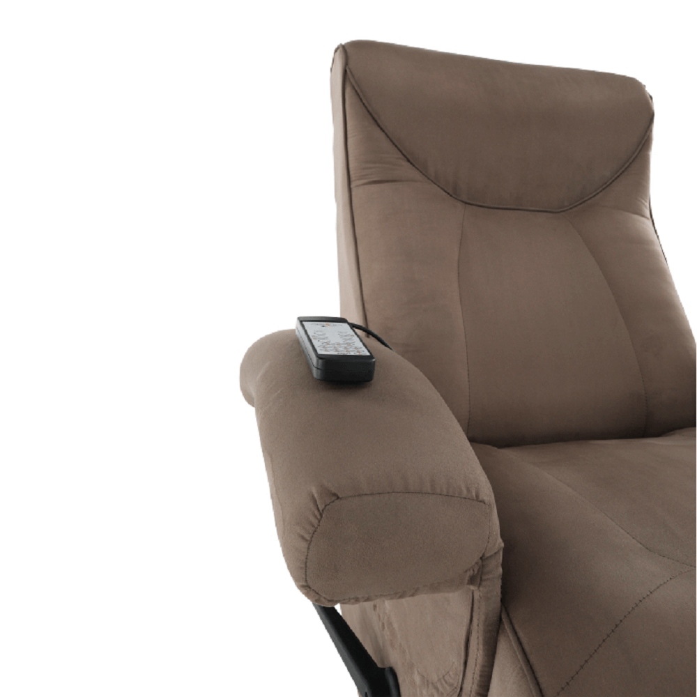 KONDELA Relaxačné kreslo, s elektrickou funkciou vibrovania, sivohnedá látka, SUAREZ