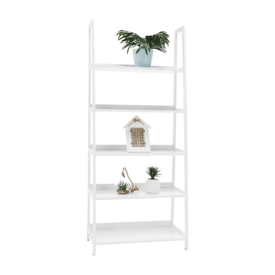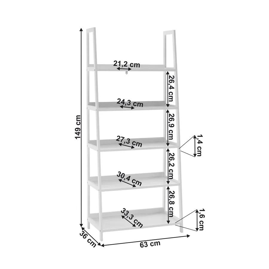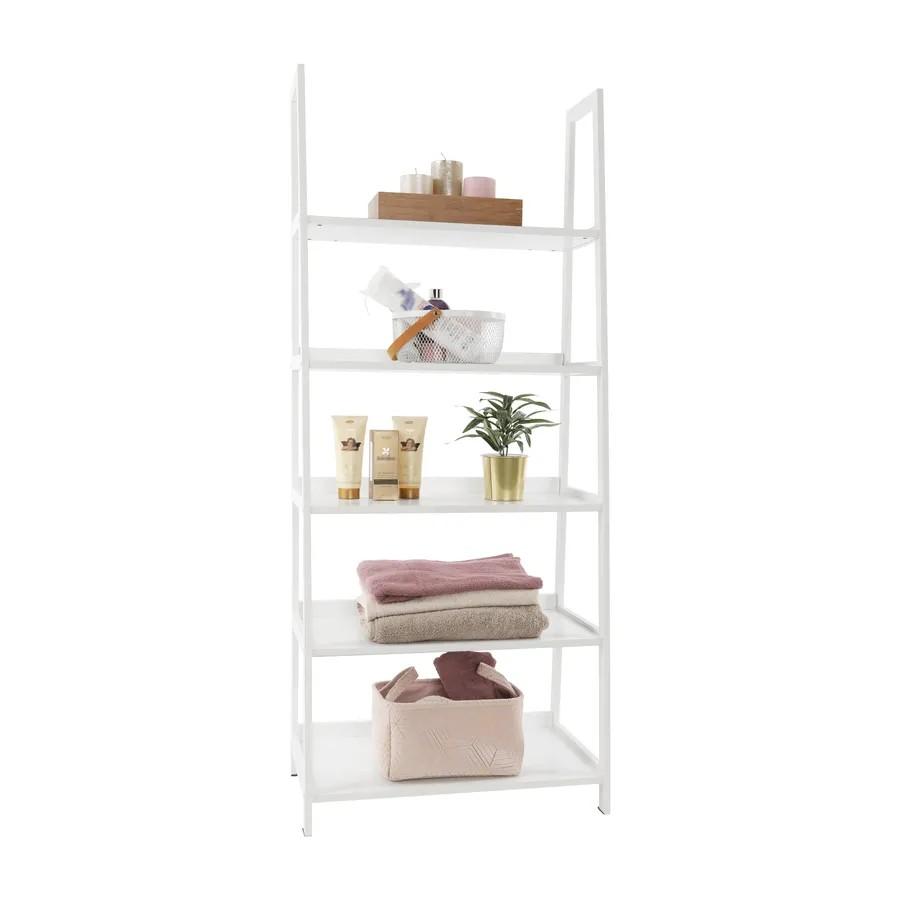 5-policový regál, Farba: biela, Materiál: MDF/lakovaný bambus