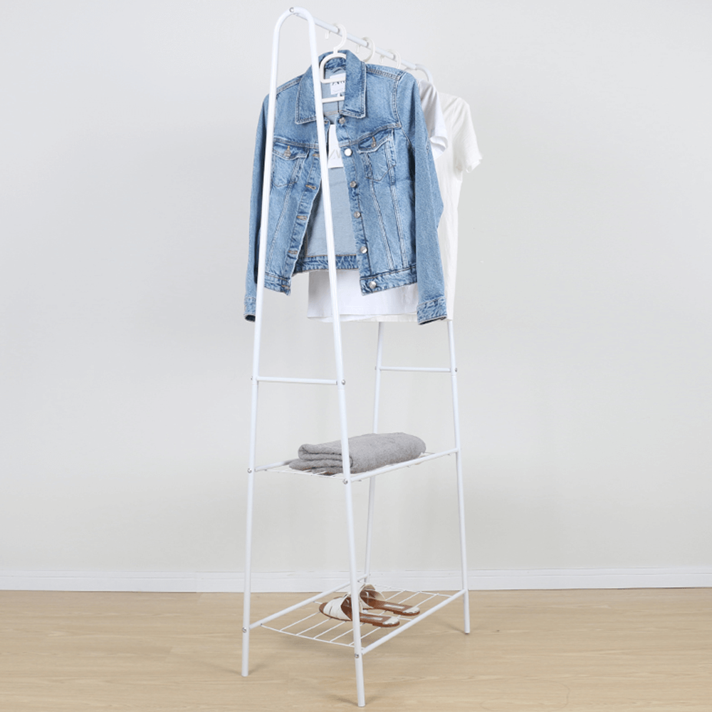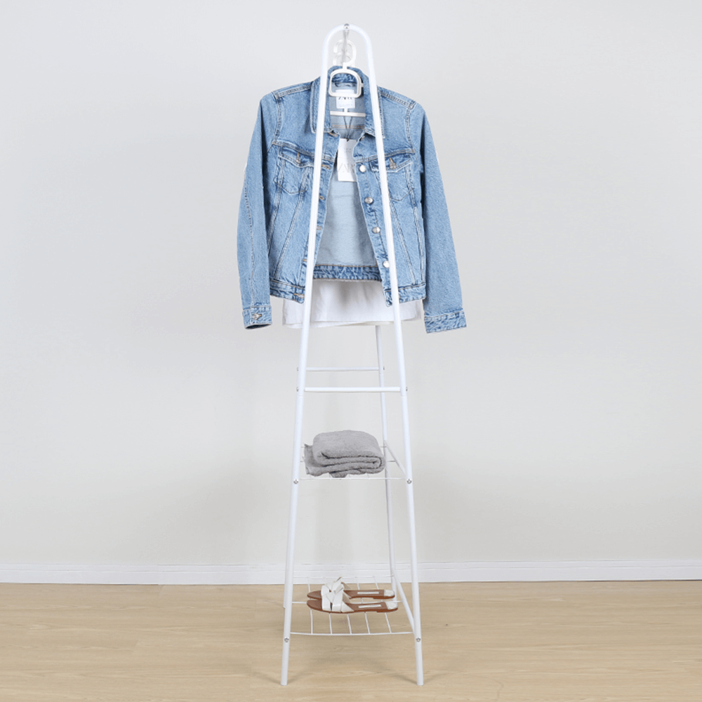 KONDELA RETOR STOJAN NA OBLECENIE S POLICAMI, BIELA