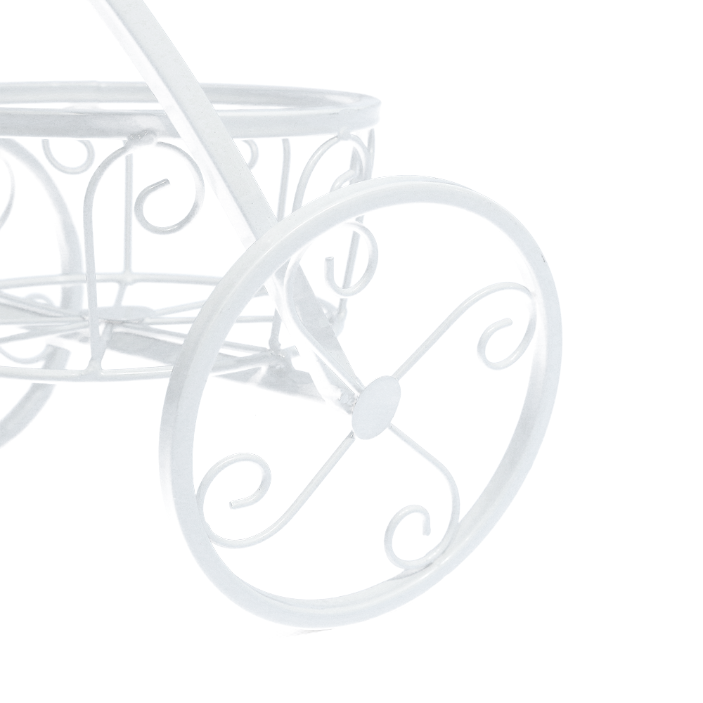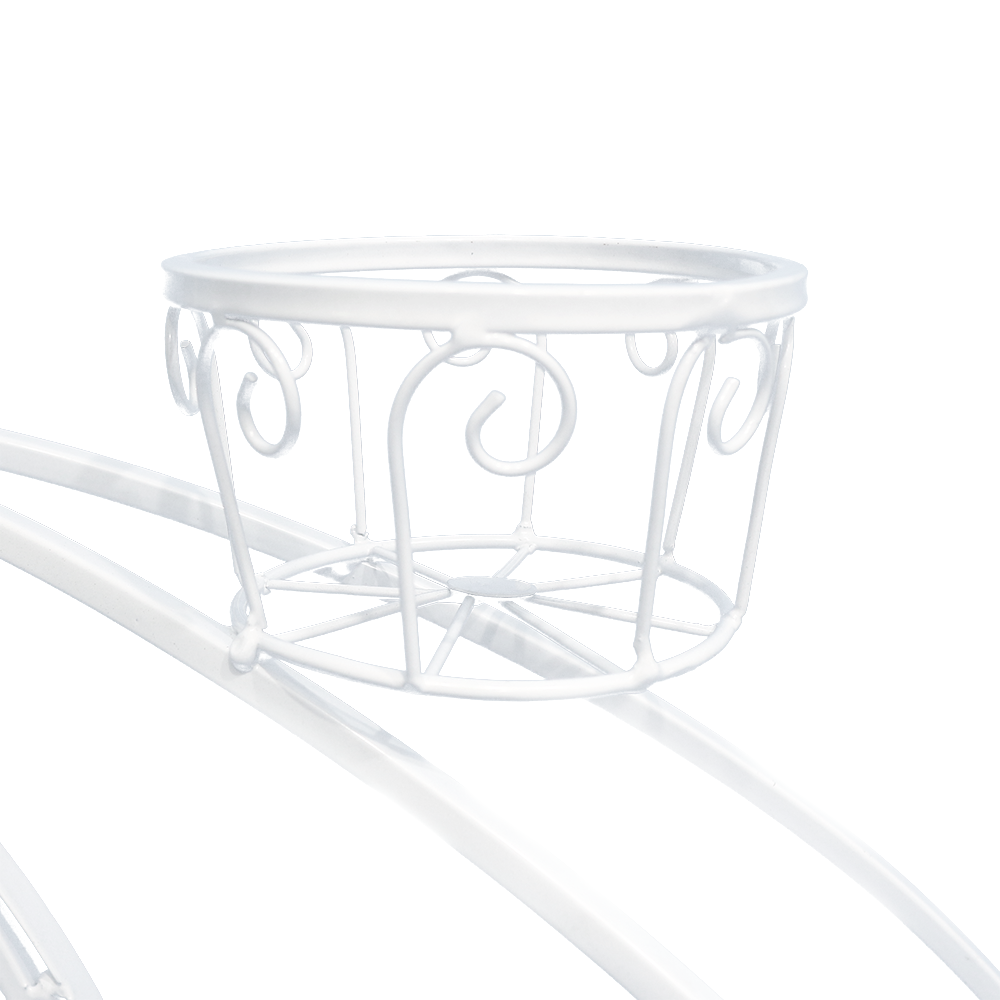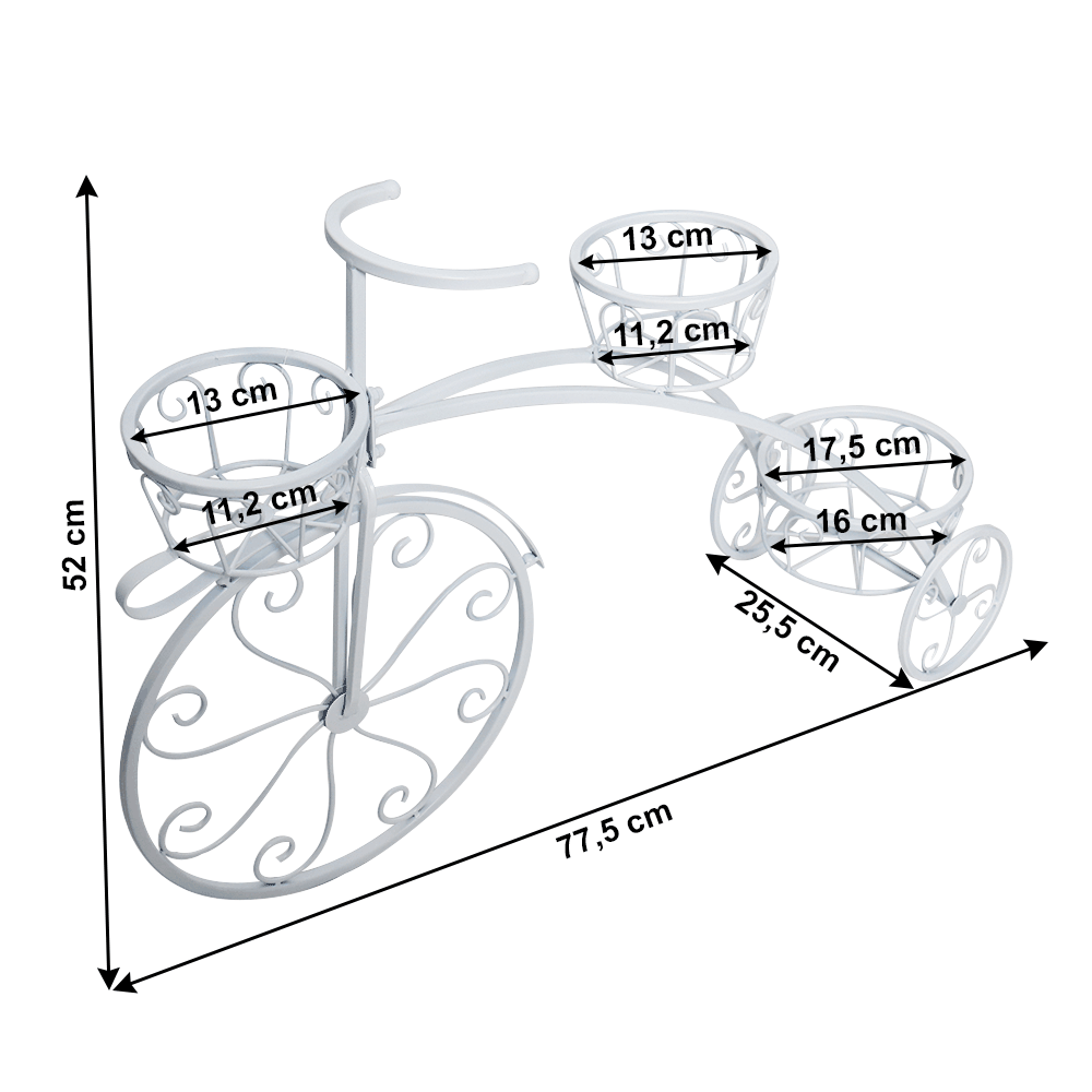Materiál: kovFarba: bielaRozmery (ŠxHxV): 77,5x25,5x52 cmSpodný a horný priemer menších kvetináčov: 11,2/13 cmSpodný a horný priemer väčšieho kvetináča: 16/17,5 cmV retro štýleDodávané v monte