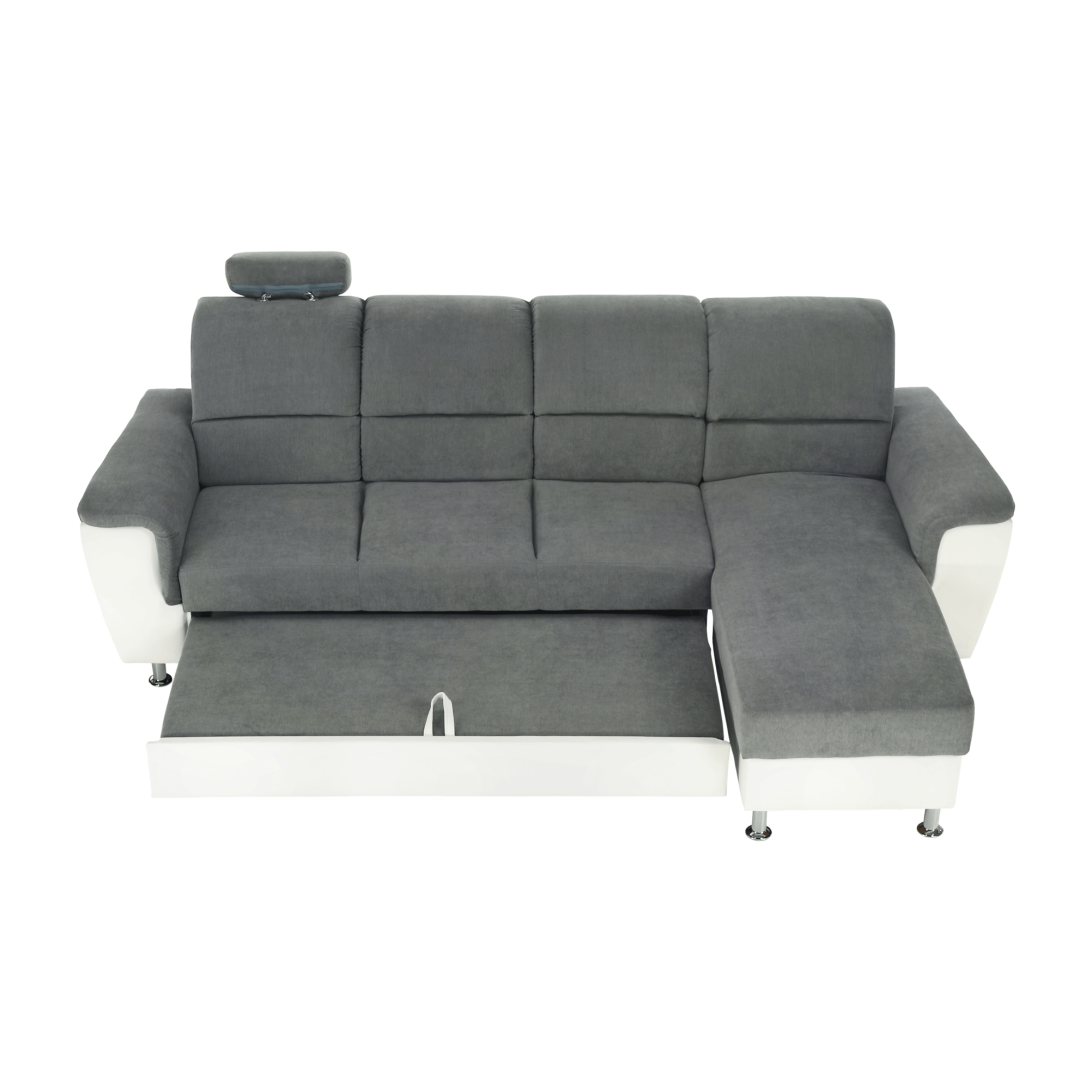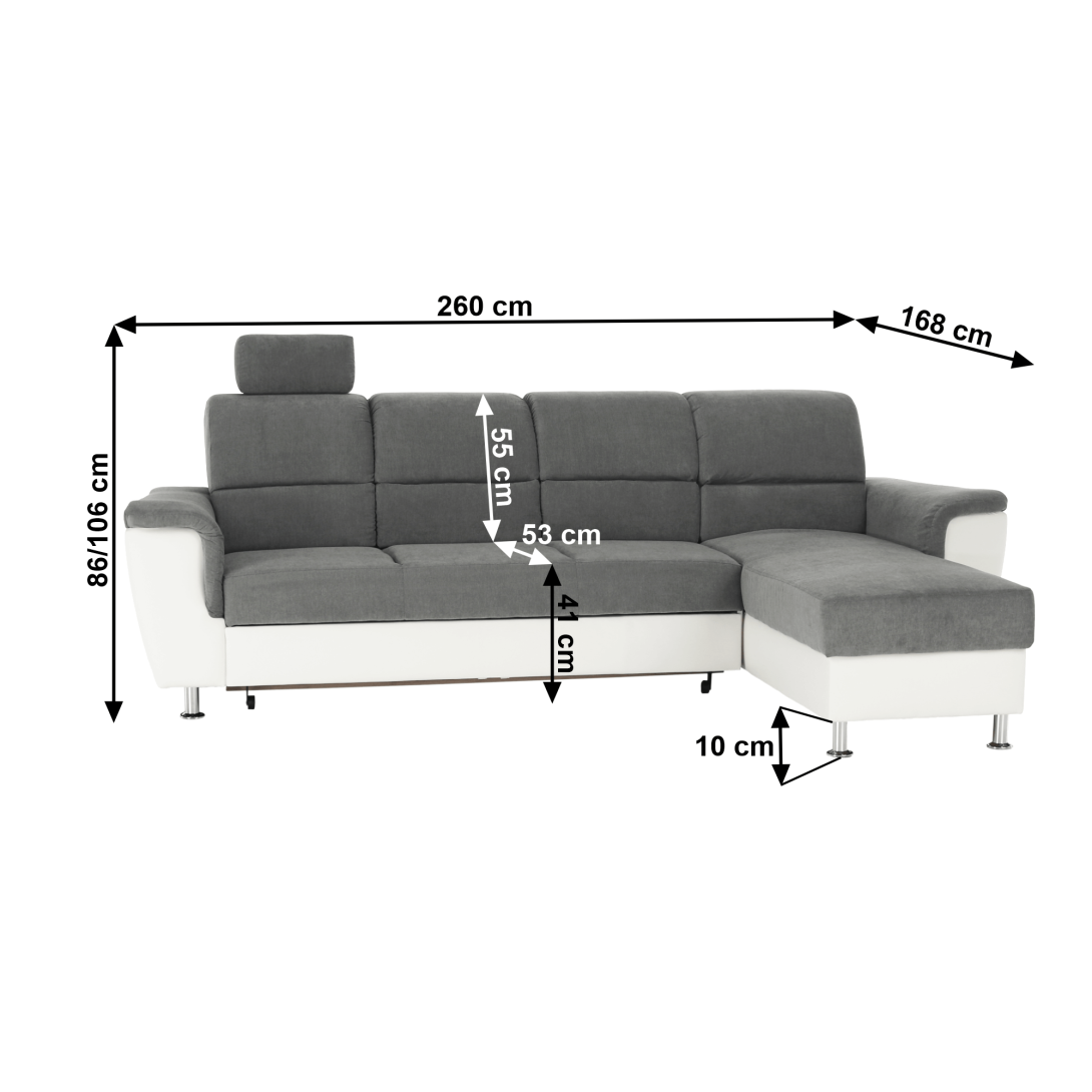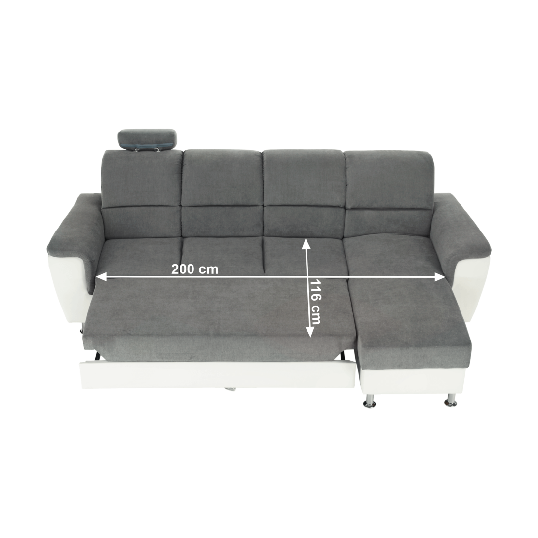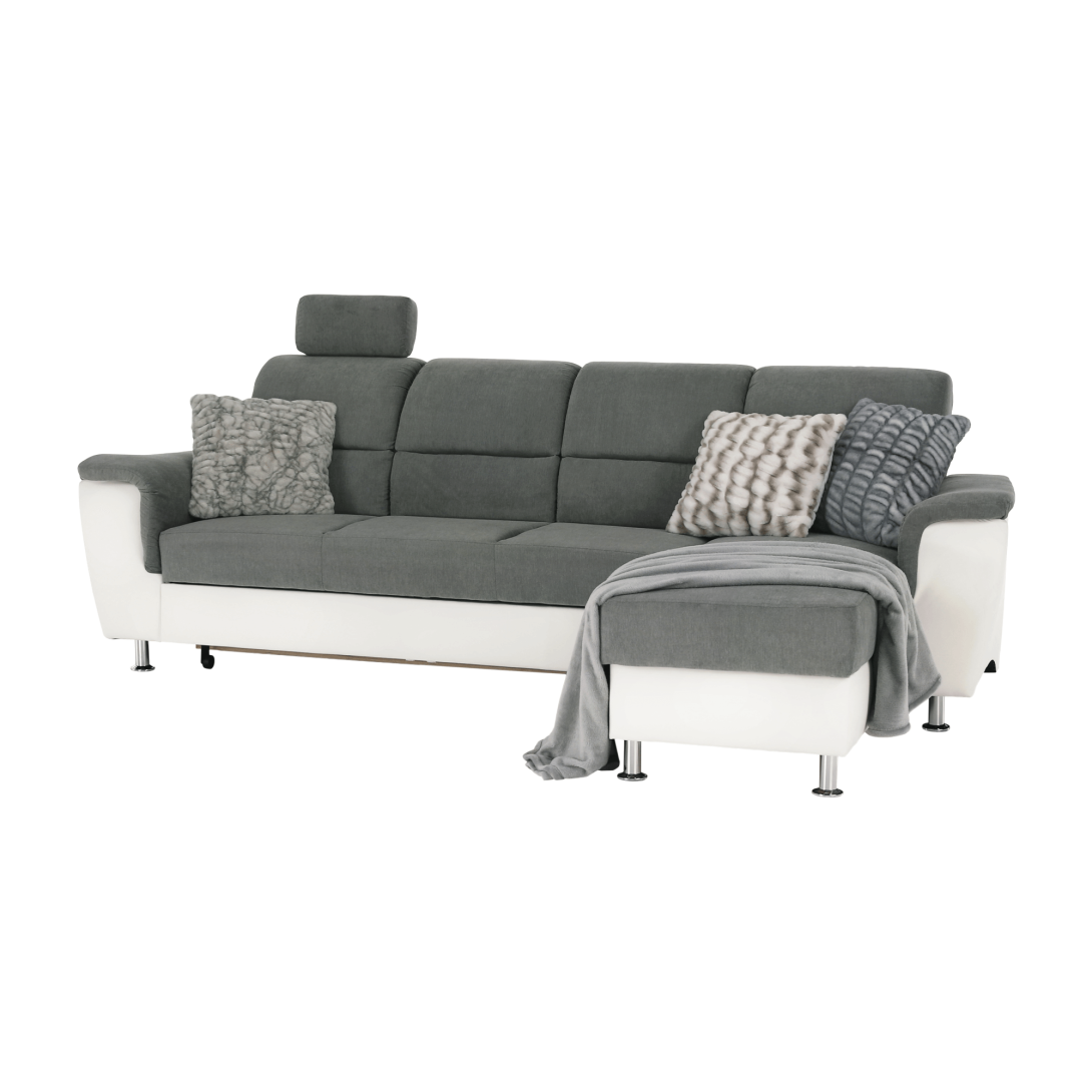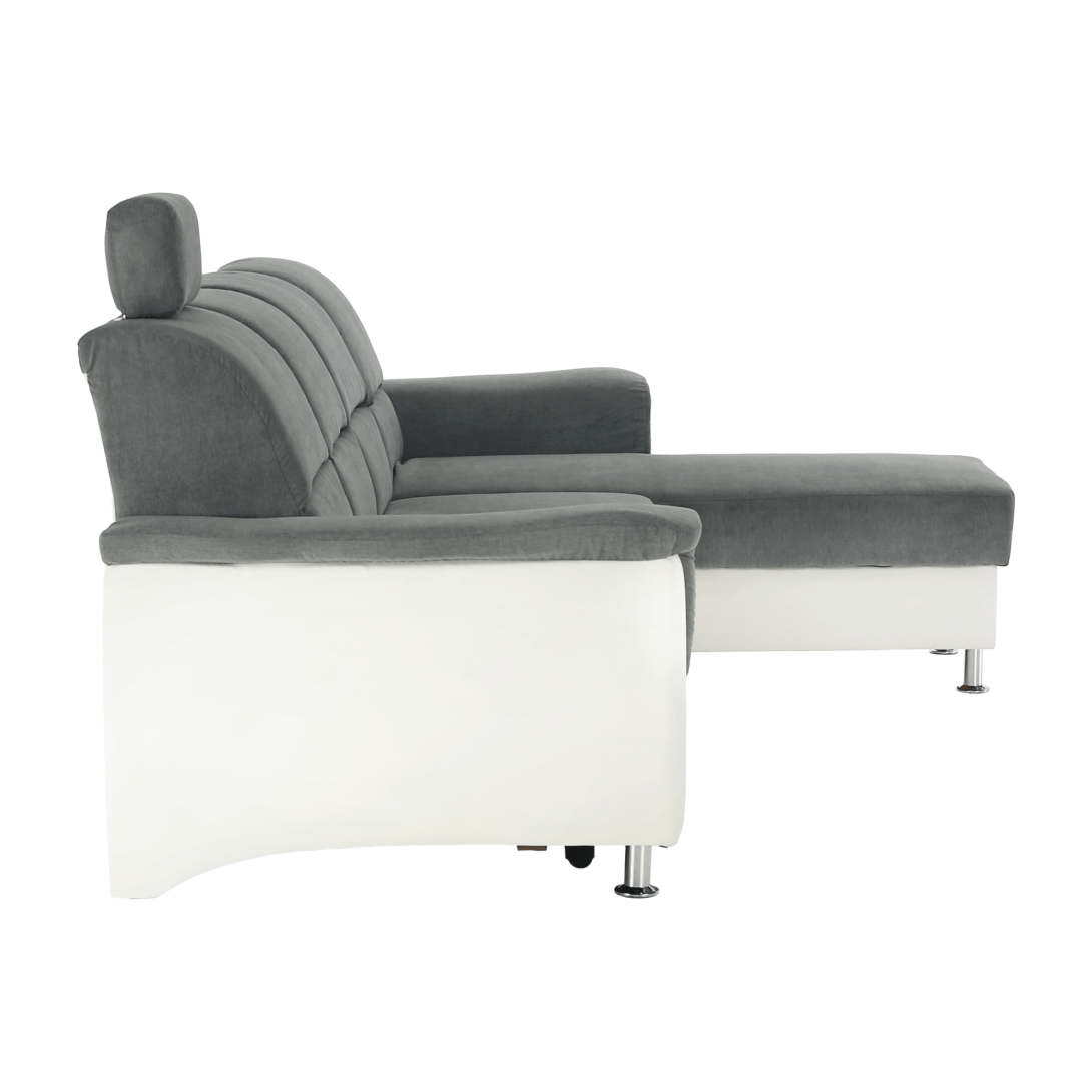 KONDELA Roh malý, ekokoža biela/látka sivá, pravá, SANTIAGO