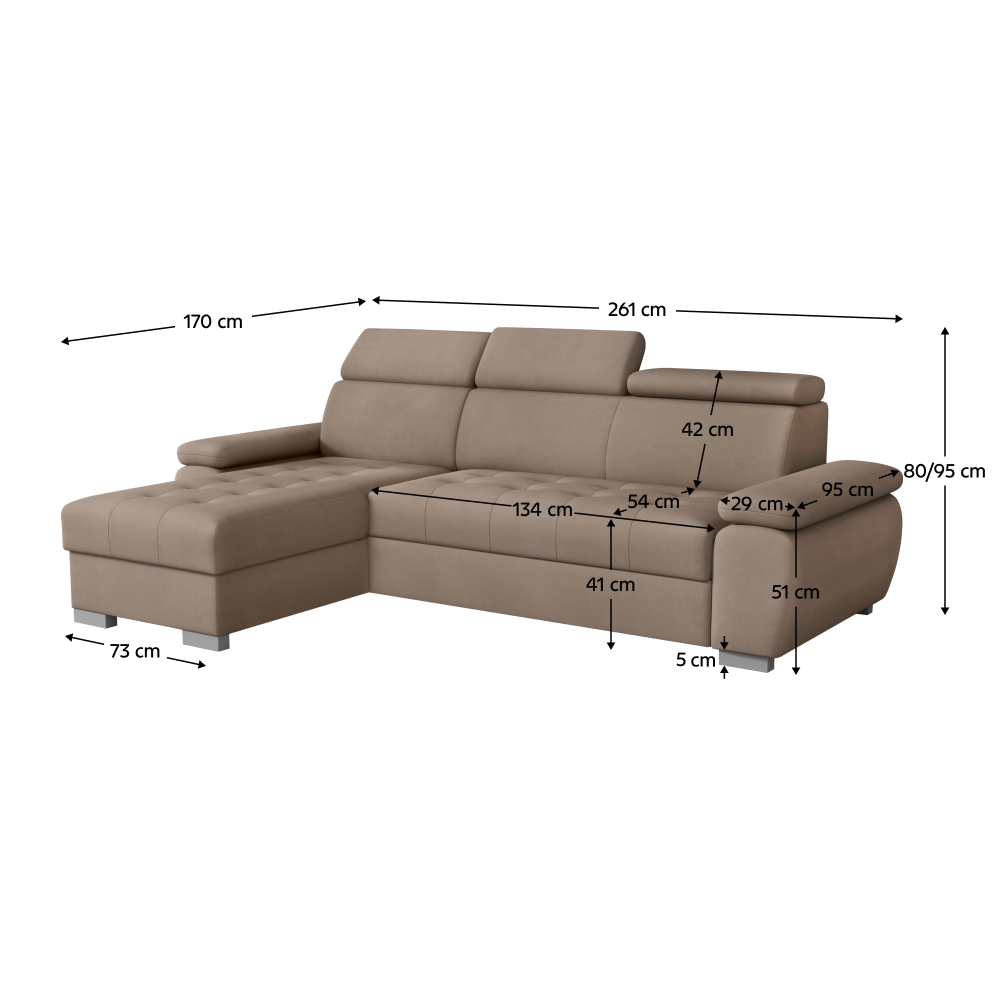 Materiál: látka Paros 3Oderuodolnosť textílie podľa testu Martindale: 55 000 oderovFarba: sivobéžová TaupeRozmery (ŠxHxV): 261x170x80/95 cmPlocha na spanie (ŠxD): 123x202 cmVýška sedu: 41 cmHĺbka sedu: 54 cmRozmery otomanu (ŠxH): 73x170 cmRozmery opierky na ruku (ŠxHxV): 29x95x51 cmŠírka sedacej časti: 134 cmĽavé prevedenieCeločalúnenáRozkladaciaRohováS úložným priestoromNa nožičkáchMateriál nožičiek: plastFarba nožičiek: striebornáVýška spodného priestoru od podlahy: 5 cmVýplň: pružina falista/pur penaPolohovateľné opierky hlavy6 stupňové polohovanie opierokPraktickáModernáDodávané v demontePonúkame vám možnosť vybrať si zo 6 farebných prevedení látky Kronos alebo z 2 farebných prevedení látky Paros za cenu 985 Eur. Pri individuálnej objednávke je potrebné zaplatiť 20% zálohu z danej sumy. Po uhradení zálohy bude Vaša požiadavka zadaná do výroby. Dodacia lehota 6-8 týždňov.