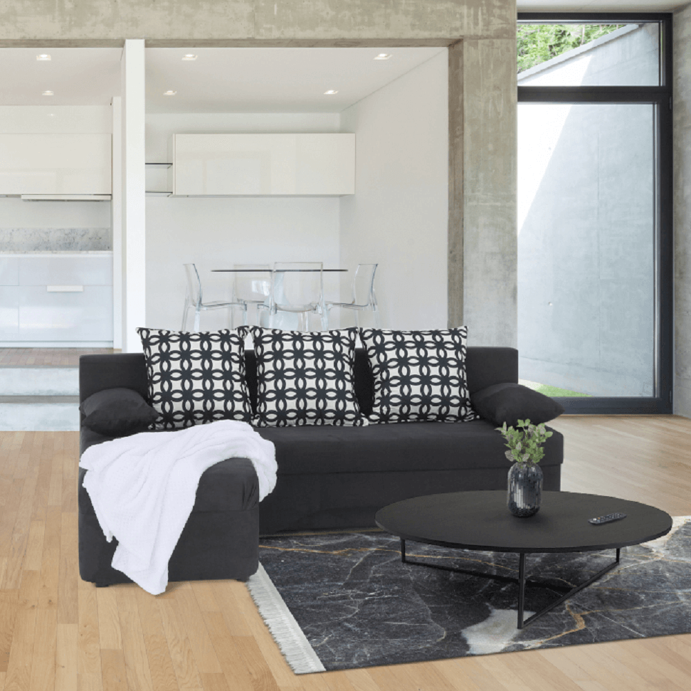 Rohová rozkladacia sedacia súprava POLARIS NEWMateriál: látka Oderuodolnosť textílie podľa testu Martindale: 55 000 oderovFarba: tmavosivá mix/vankúše vzorRozmery (ŠxHxV): 191x145x68/78 cmPlocha na spanie (ŠxD):104x190 cmVýška sedu: 40Hĺbka sedu: 44/64 cmVýška nožičiek: 2 cmDekoratívne vankúše (ŠxH): 25x50 cm Opierkové vankúše (ŠxV): 45x45 cm 3+2 vankúše.Nosnosť na osobu: 90 kgDodávané v demonte.