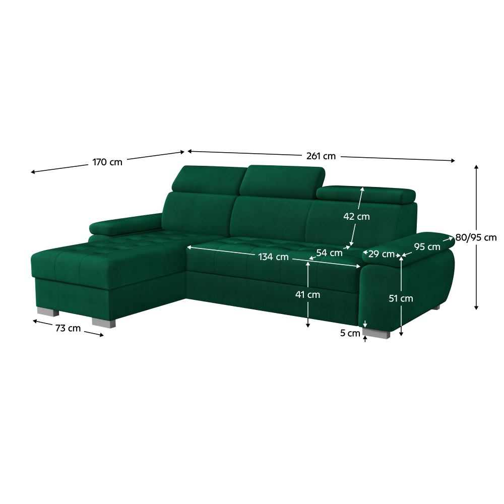Materiál: látka Kronos 14Oderuodolnosť textílie podľa testu Martindale: 60 000 oderovFarba: zelenáRozmery (ŠxHxV): 261x170x80/95 cmPlocha na spanie (ŠxD): 123x202 cmVýška sedu: 41 cmHĺbka sedu: 54 cmRozmery otomanu (ŠxH): 73x170 cmRozmery opierky na ruku (ŠxHxV): 29x95x51 cmŠírka sedacej časti: 134 cmĽavé prevedenieCeločalúnenáRozkladaciaRohováS úložným priestoromNa nožičkáchMateriál nožičiek: plastFarba nožičiek: striebornáVýška spodného priestoru od podlahy: 5 cmVýplň: pružina falista/pur penaPolohovateľné opierky hlavy6 stupňové polohovanie opierokPraktickáModernáDodávané v demontePonúkame vám možnosť vybrať si zo 6 farebných prevedení látky Kronos alebo z 2 farebných prevedení látky Paros za cenu 985 Eur. Pri individuálnej objednávke je potrebné zaplatiť 20% zálohu z danej sumy. Po uhradení zálohy bude Vaša požiadavka zadaná do výroby. Dodacia lehota 6-8 týždňov.
