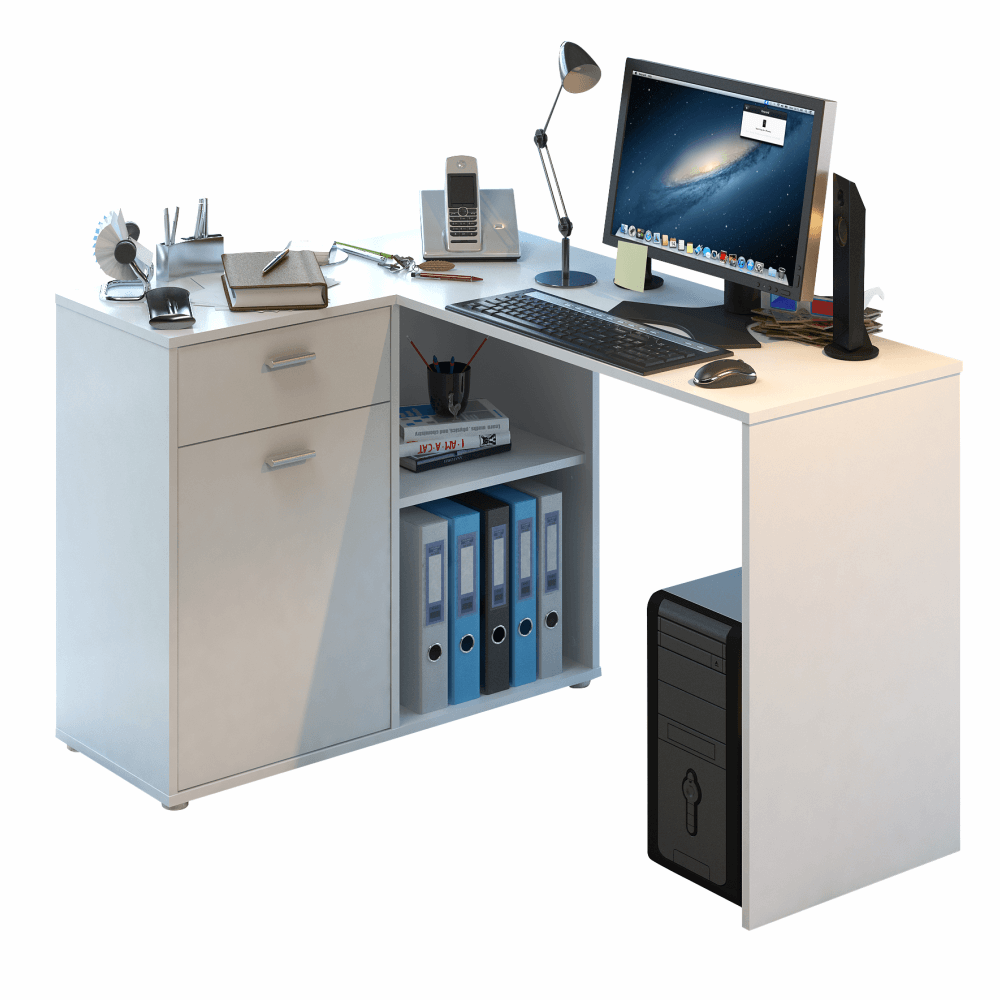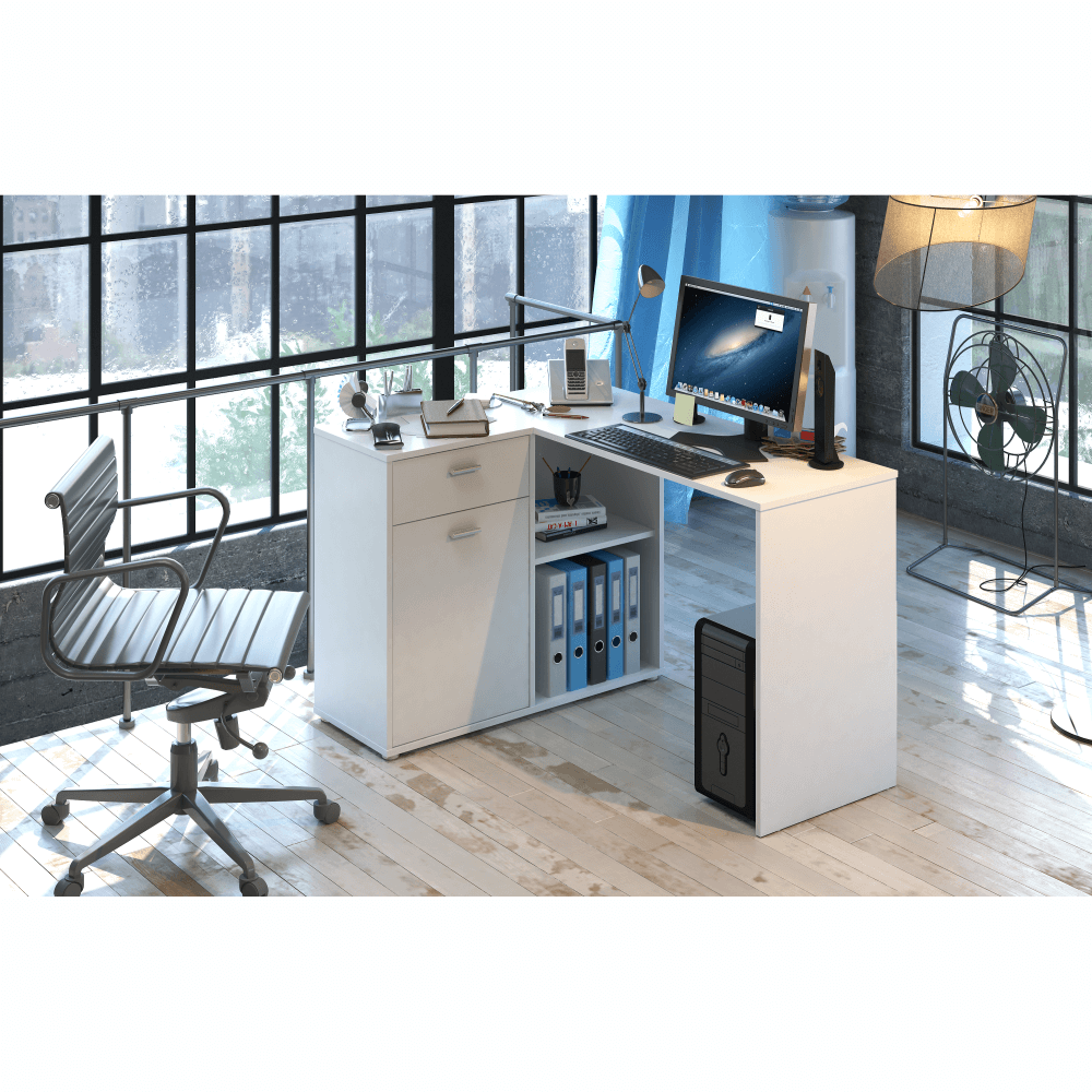 KONDELA Rohový PC stôl, biela, KALIMERO