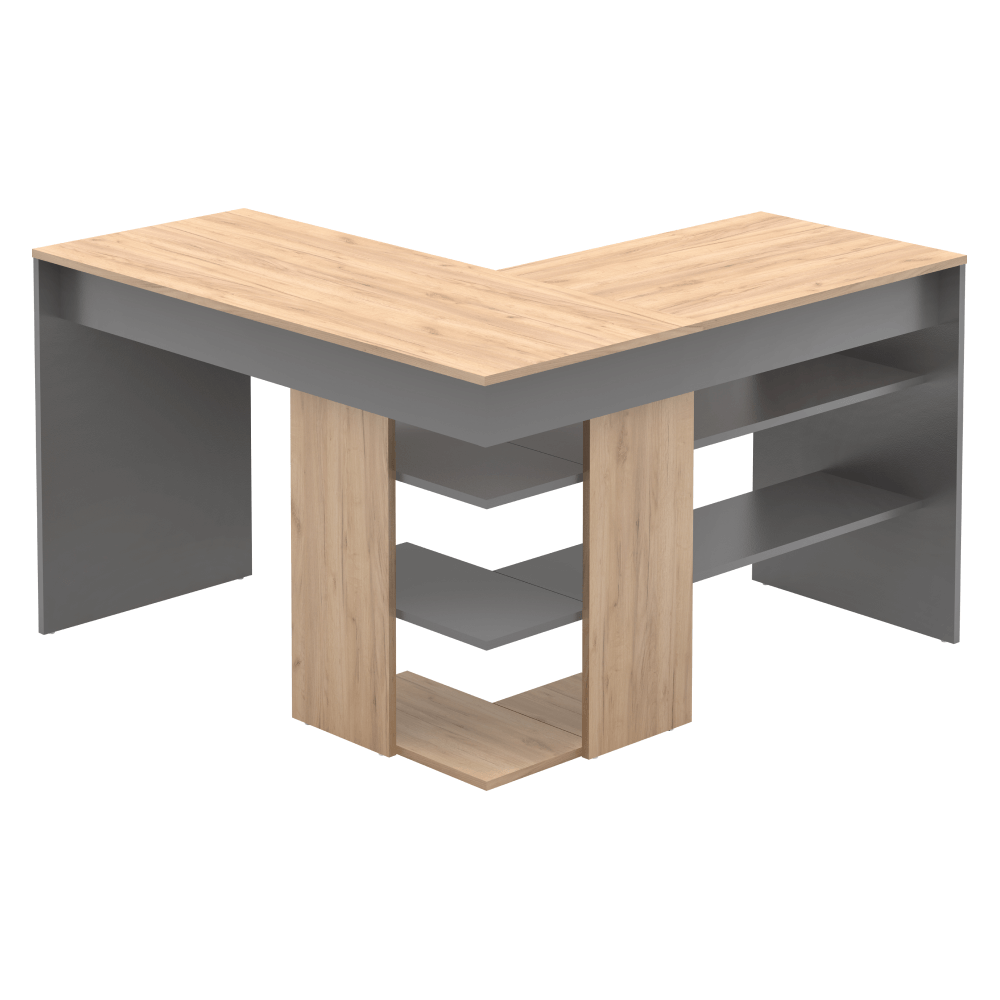 KONDELA Rohový PC stôl, dub artisan/grafit, TAMARI