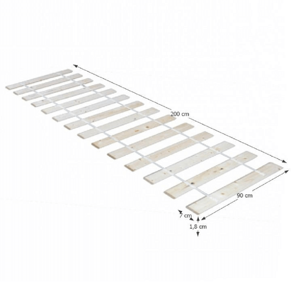 Materiál: latyPrevedenie: smrekové drevoRozmery (ŠxV): 90x200 cmPočet lát: 14Priestor medzi latami: 9 cmVhodný pre penové a sendvičové matraceNosnosť roštu závisí od nosnosti matracaRošt nie je samonosnýSmrekové lamely spojené páskouKaždý rošt je o 1 cm užší a 4 cm kratší od udaného rozmeru, napr. 90x200 = 89x196 cm.
