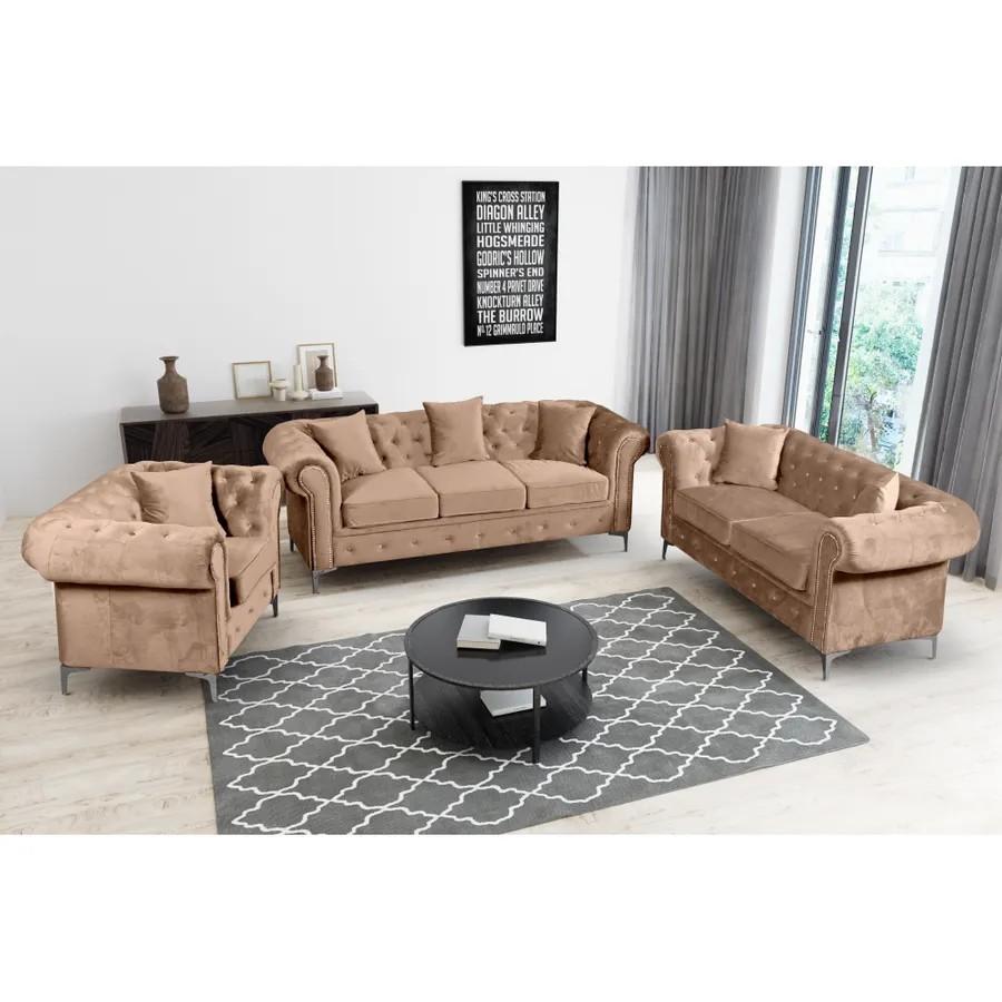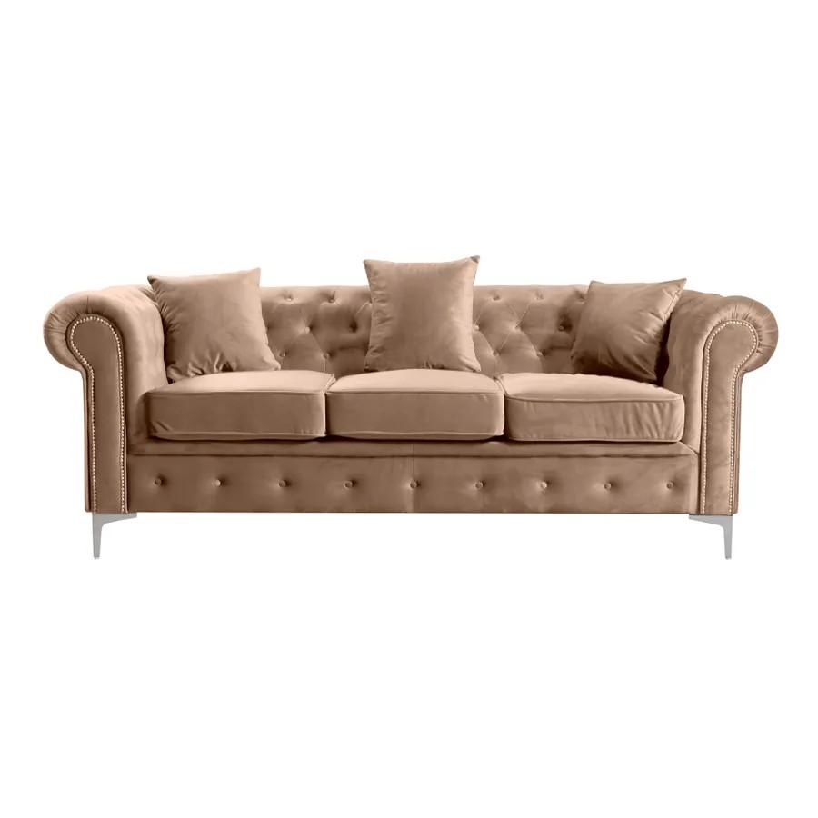 Elegantná a luxusná obývacia izba s 3-sedom ROMANO sa stane skutočnosťou. Čalúnený je svetlohnedou látkou Velvet, ktorá pridáva na noblese. 3-sed je celočalúnený a jeho umiestnením do priestoru získate neprehliadnuteľný prvok, ktorý upúta na prvý pohľad. Stabilitu zabezpečujú kovové nohy v striebornej farbe. Tento impozantný 3-sed je hrdým zástupcom štýlu Chesterfield, ktorého reprezentujú zakrivené opierky ruky, telo bohato zdobené gombíkmi a prešívané čalúnenie. Dodávaný je s tromi dekoratívnymi vankúšmi. Sedacia časť je pripevnená suchým zipsom, takže sa dá jednoducho skladať. Je rozkladací, viete ho prakticky využiť pri nečakaných návštevách, ktoré sa rozhodnú u vás prespať. Poskytne ložko s plochou na spanie s rozmerom 133x190 cm. Nádherne vynikne nielen v obývačke, ale aj v kancelárii, hale či iných reprezentatívnych priestoroch.