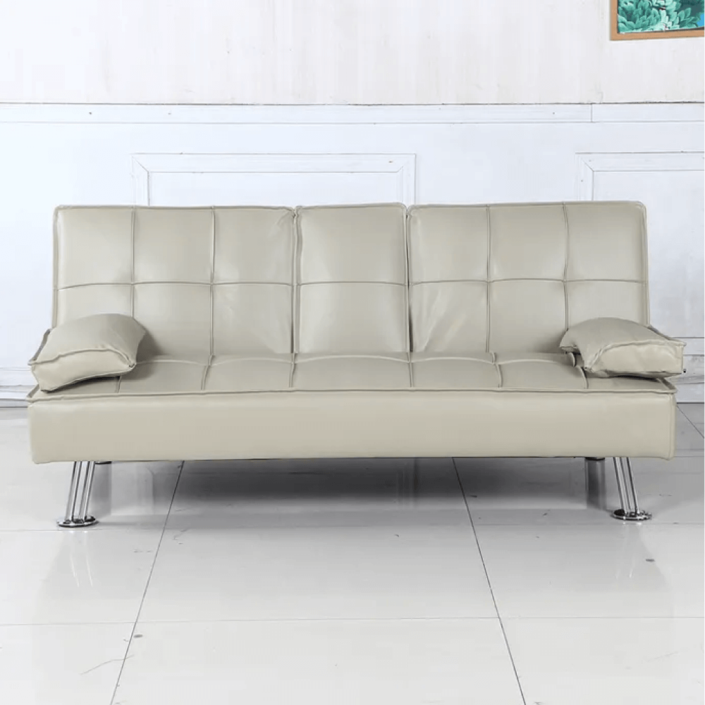 Rozkladacia pohovka GOLDIA NEWMateriál: ekokoža/kovOderuodolnosť ekokože podľa testu Martindale: 100 000 oderovFarba: béžováRozmery (ŠxHxV): 167x86x76 cm Plocha na spanie (ŠxD): 167x100 cmVýška sedu: 37 cmHĺbka sedu: 50 cmVýška chrbtovej opierky: 45 cmVýška nožičiek: 18 cmOpierka na ruky (ŠxH): 23x45 cm Nosnosť: 160 kgDodávané v demonte.