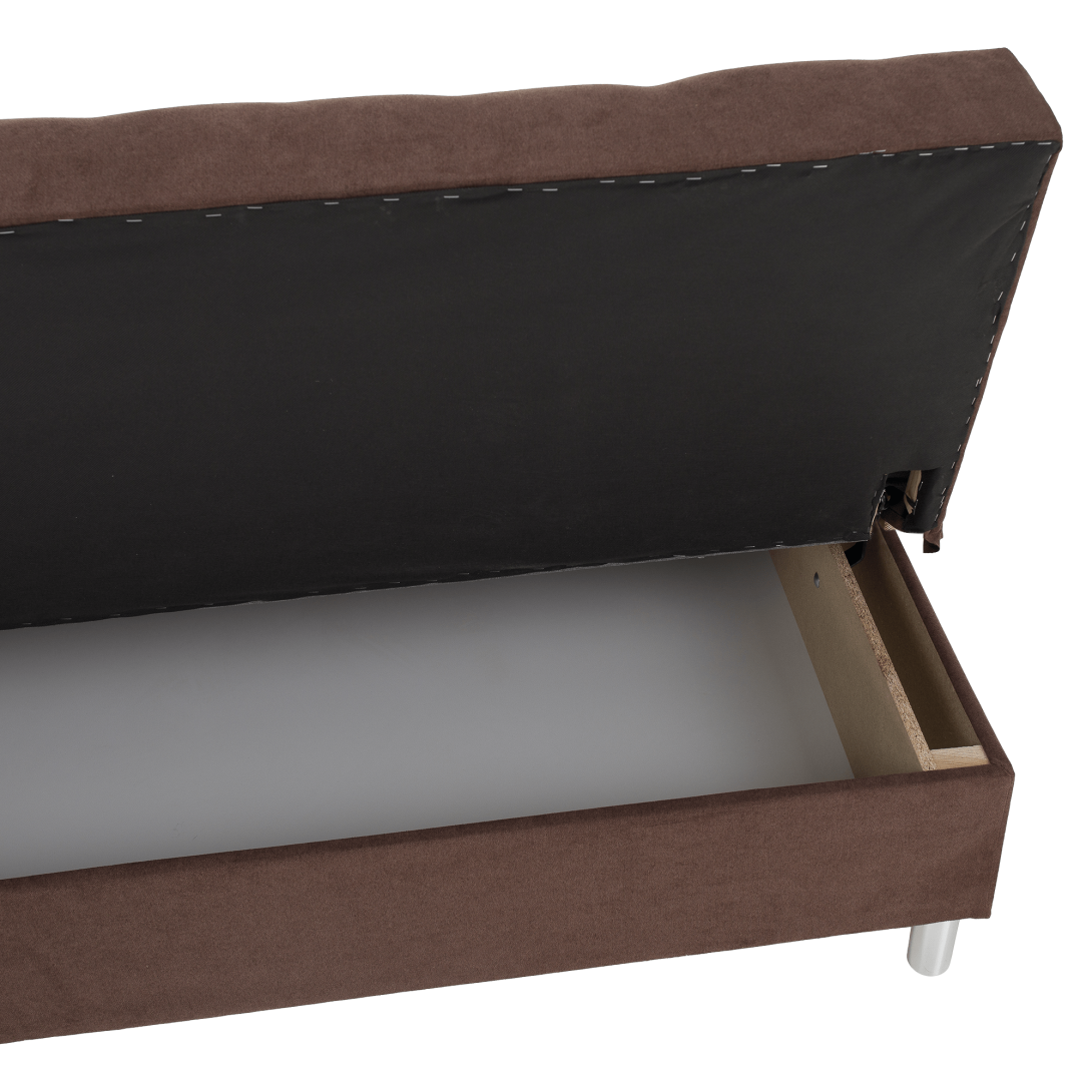 Materiál: látka Soro 28Oderuodolnosť textílie podľa testu Martindale: 90 000 oderovFarba: hnedáRozmery (ŠxHxV): 194x89x94 cmPlocha na spanie (ŠxD): 115x194 cmVýška sedu: 45 cmHĺbka sedu: 52 cmNosnosť na osobu: 90 kgPlastové nožičkyFarba nožičiek: striebornáVýška nožičiek: 7 cmRozkladaciaRozkladanie systémom KLIK KLAKS úložným priestoromDodávaná s vankúšmiPraktickáModernáDodávané v demonte
