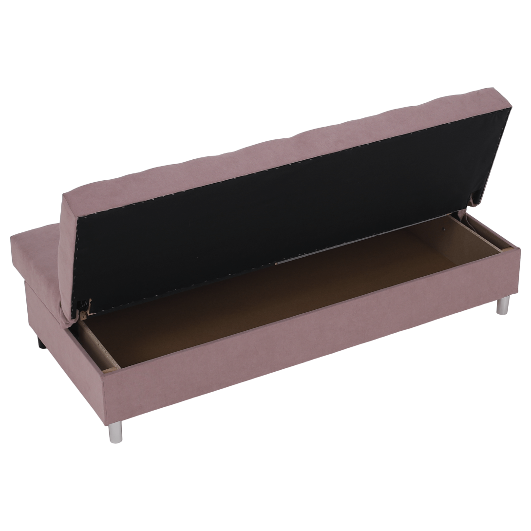 Materiál: látka Soro 61Oderuodolnosť textílie podľa testu Martindale: 90 000 oderovFarba: ružováRozmery (ŠxHxV): 194x89x94 cmPlocha na spanie (ŠxD): 115x194 cmVýška sedu: 45 cmHĺbka sedu: 52 cmNosnosť na osobu: 90 kgPlastové nožičkyFarba nožičiek: striebornáVýška nožičiek: 7 cmRozkladaciaRozkladanie systémom KLIK KLAKS úložným priestoromDodávaná s vankúšmiPraktickáModernáDodávané v demonte