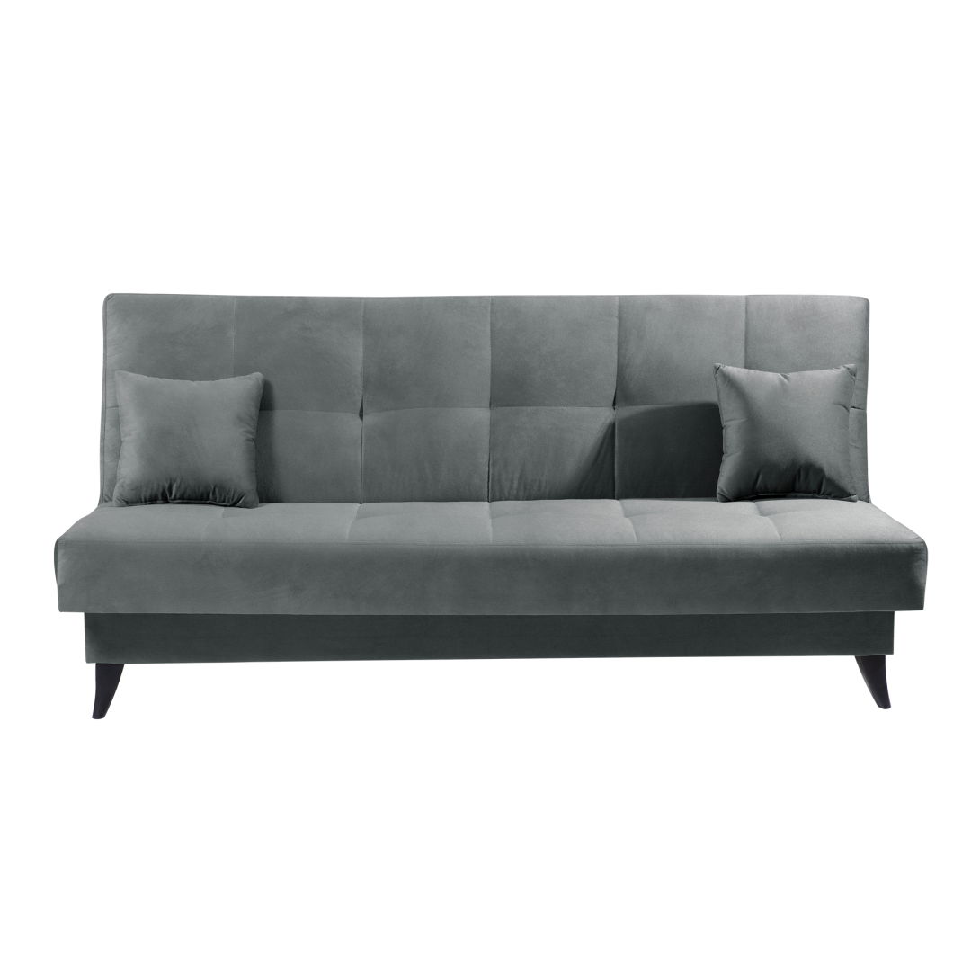 Materiál: látka Asti 23Oderuodolnosť textílie podľa testu Martindale: 90 000 oderovFarba: siváRozmery (ŠxHxV): 199x91x92 cm Plocha na spanie (ŠxD): 116x199 cm Výška sedu: 46 cmHĺbka sedu: 55 cmRozkladaciaS úložným priestoromNosnosť na osobu: 90 kgVýška spodného priestoru od podlahy: 13 cm2 dekoratívne vankúšikyRozmer vankúšov (ŠxH): 37x37 cmPlastové nožičkyFarba nožičiek: čiernaVýplň: bonelová pružina/pur penaDodávané v demonte