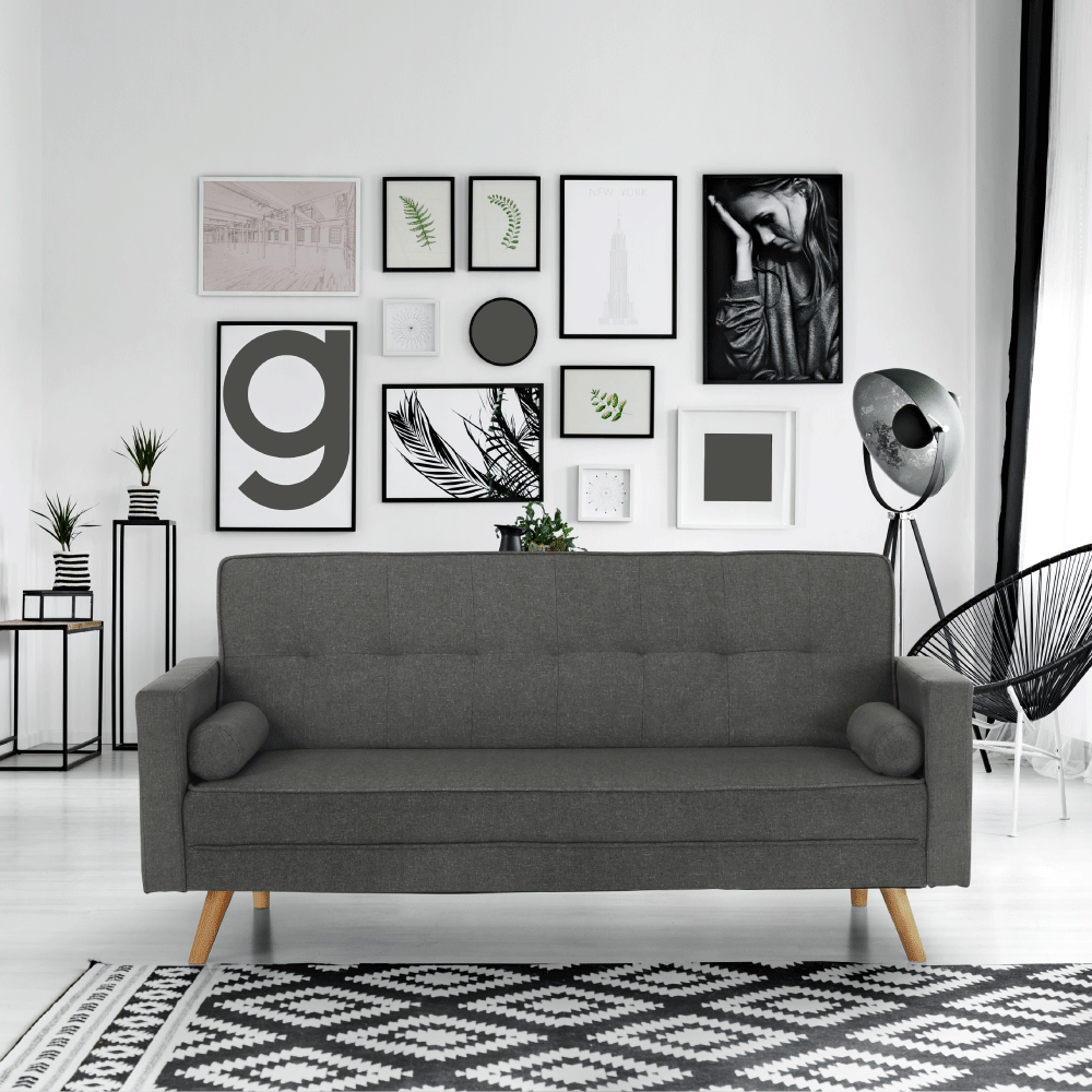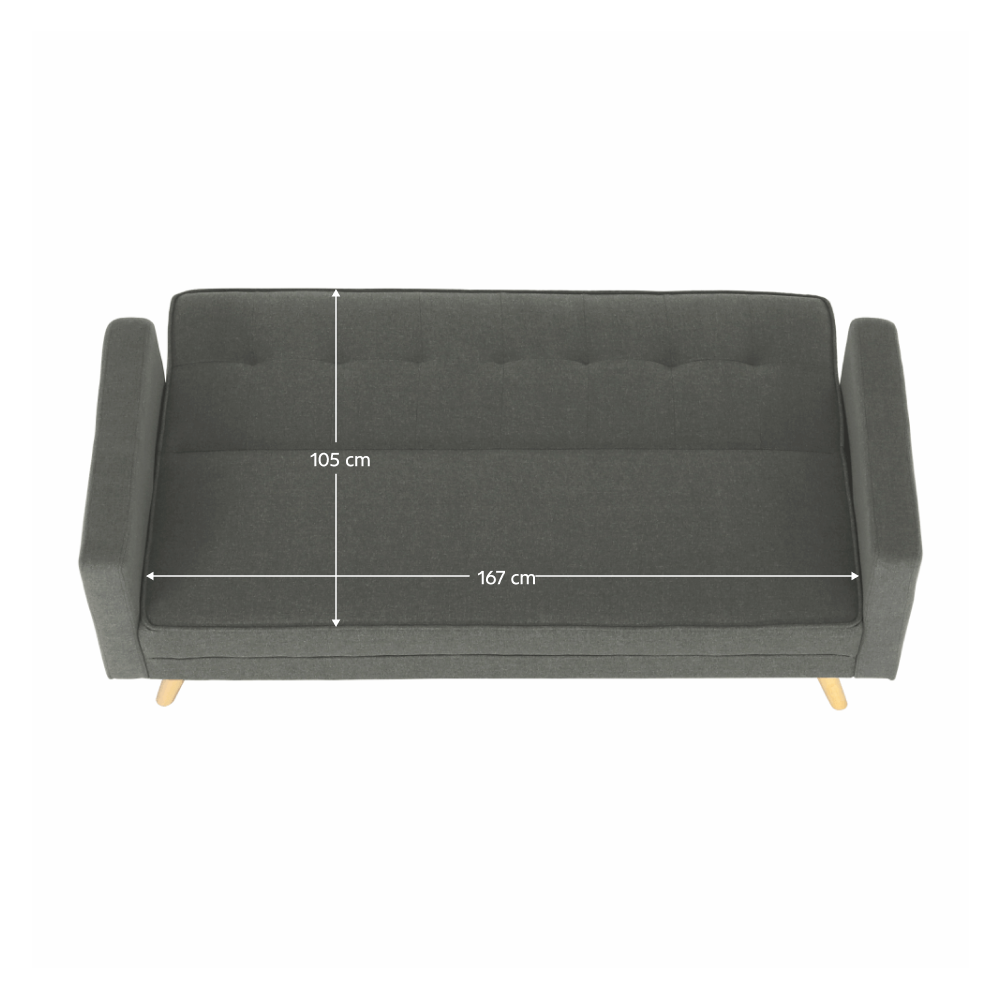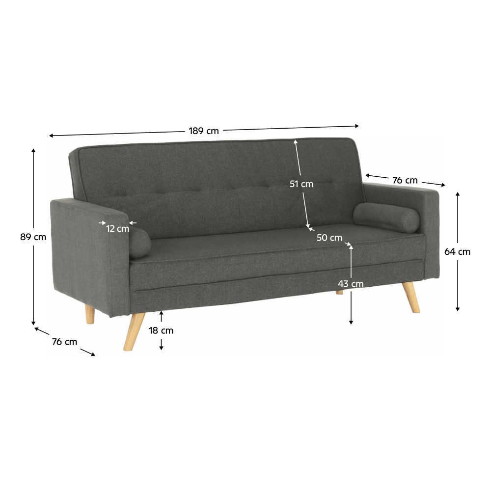 Rozkladacia pohovka OTISAMateriál: látka/drevoOderuodolnosť textílie podľa testu Martindale: 40 000 oderovFarba: siváRozmery (ŠxHxV): 189x76x89 cmPlocha na spanie (ŠxD): 167x105 cm Výška sedu: 43 cmHĺbka sedu: 50 cmVýška chrbtovej opierky: 51 cmVýška nožičiek: 18 cmOpierka na ruky (ŠxH): 12x64 cm Výška spodného priestoru od podlahy: 18 cmNosnosť: 160 kgDodávané v demonte.