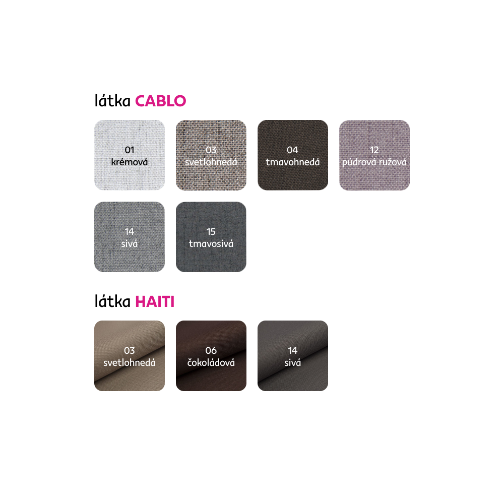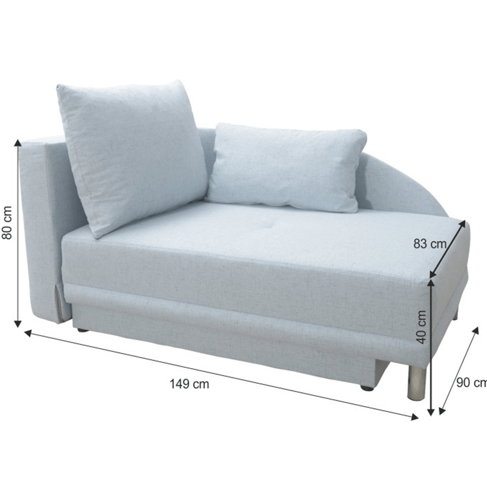 Materiál: látka Cablo Oderuodolnosť textílie podľa testu Martindale: 72 000 oderov Farba: svetlomodrá 11 Rozmery (ŠxHxV): 149x90x80 cm Plocha na spanie (ŠxD): 80x195 cm Výška sedu: 40 cm Hĺbka sedu: 83 cm Výška spodného priestoru od podlahy: 10 cm Rozkladacia S úložným priestorom Bonelová výplň sedacej časti Dva vankúše Ľavé prevedenie Nosnosť na osobu: 90 kg Dodávané v demonte Možnosť objednania v 3 farebných prevedeniach látka Haiti alebo v 6 prevedeniach látky Cablo v cene 359 Eur. Pri individuálnej objednávke je potrebné zaplatiť 10% zálohu z danej sumy. Po uhradení zálohy bude Vaša požiadavka zadaná do výroby. Doba dodania 6-8 týždňov.