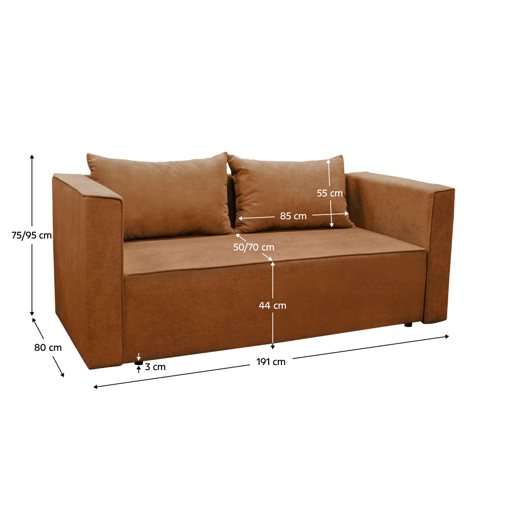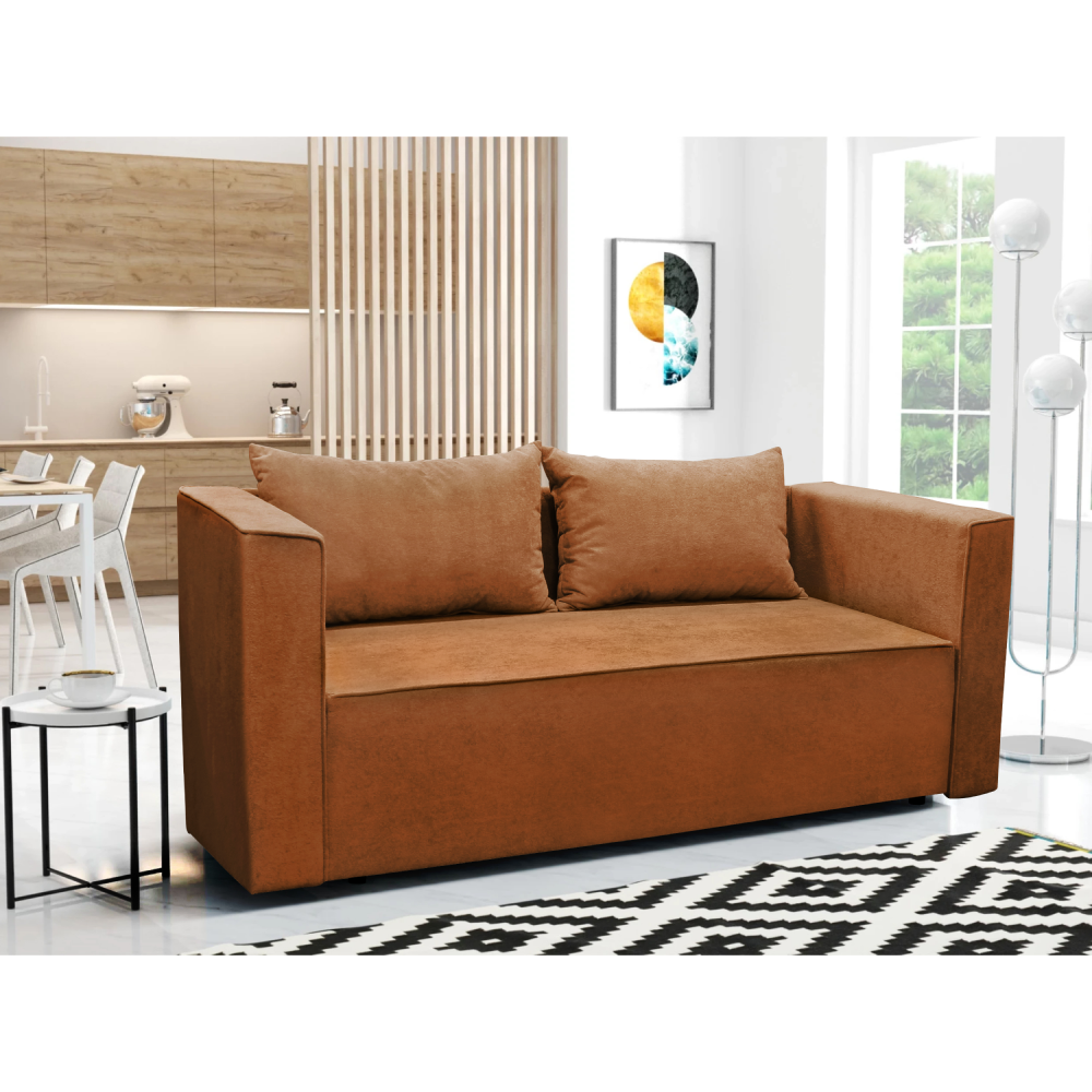 Materiál: látka Gerra 25Oderuodolnosť textílie podľa testu Martindale: 40 000 oderovFarba: terakotaRozmery (ŠxHxV): 191x80x75/95 cmPlocha na spanie (ŠxD): 80x230 cmVýška sedu: 44 cmHĺbka sedu: 50/70 cmŠírka sedu: 159 cmNosnosť na osobu: 90 kgNa nožičkáchVýška spodného priestoru od podlahy: 3 cmVýplň: pružina falista/pur penaRozkladaciaÚložný priestorDodávaná s vankúšamiRozmery vankúšov (ŠxV): 85x55 cmPraktickáModernáDodávané v demonte