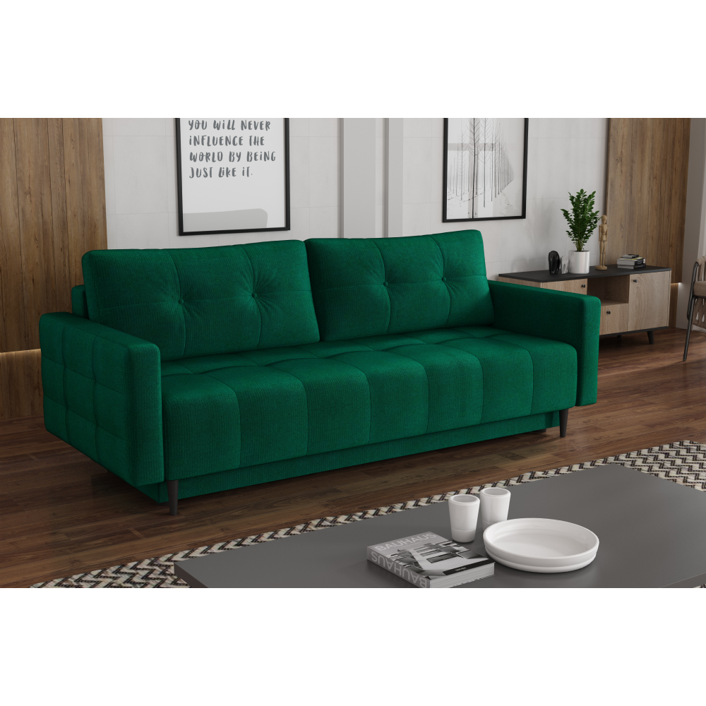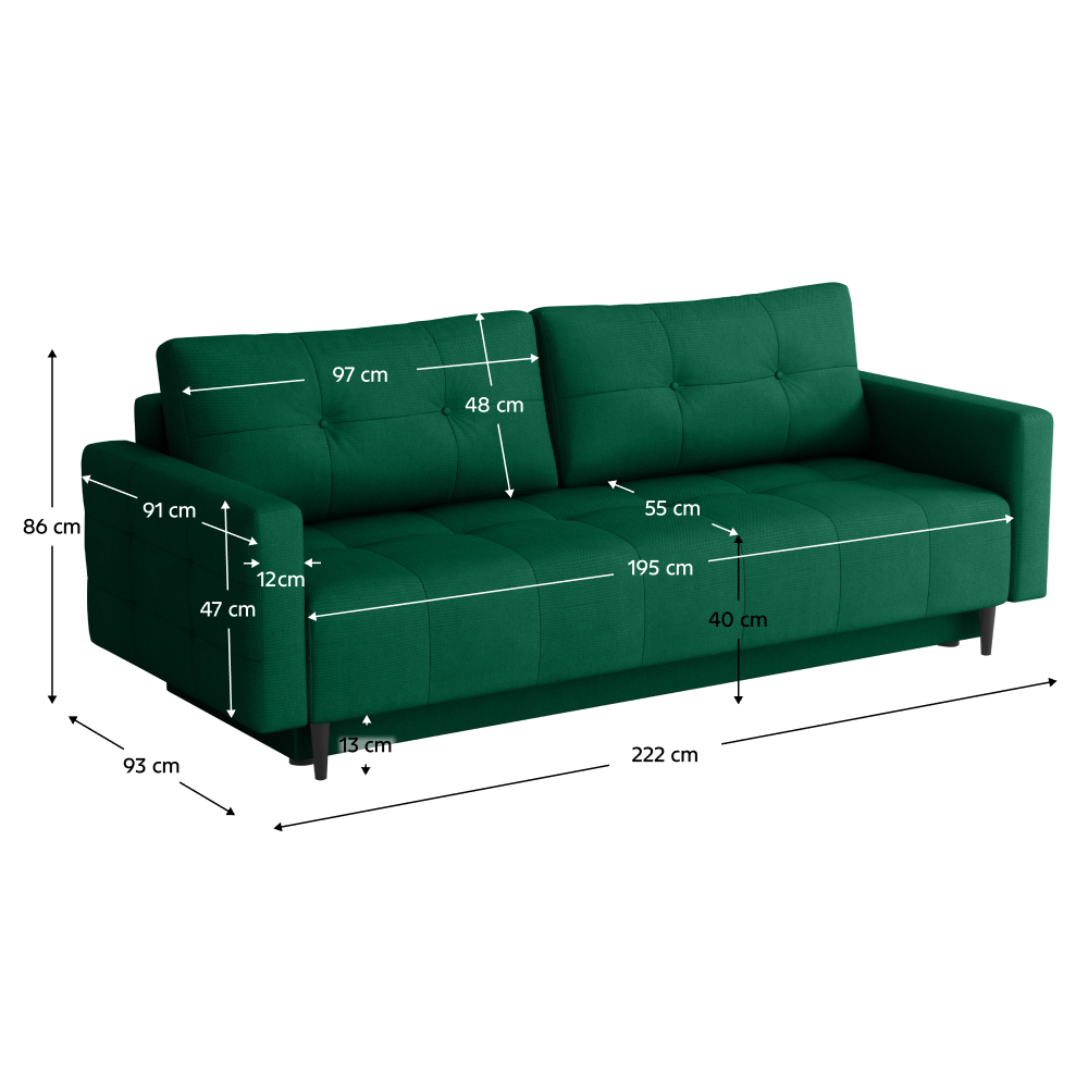 Materiál: látka Kronos 14Oderuodolnosť textílie podľa testu Martindale: 60 000 oderovFarba: zelenáRozmery (ŠxHxV): 222x93x86 cmVýška sedu: 40 cmHĺbka sedu: 55 cmRozmery opierky na ruky (ŠxHxV): 12x91x47 cmŠírka sedacej časti: 195 cmŠírka sedacej časti:Na nožičkáchMateriál nožičiek: drevoFarba nožičiek: čiernaVýška nožičiek: 13 cmVýplň: bonelová pružinaCeločalúnenáRozkladaciaS úložným priestoromS vankúšmiRozmery vankúšov (ŠxV): 97x48 cmNosnosť na osobu: 90 kgPraktickáModernáDodávaná v demontePonúkame vám možnosť vybrať si zo 4 farebných prevedení látky Paros a zo 6 farebných prevedení látky Kronos cene 639 Eur. Pri individuálnej objednávke je potrebné zaplatiť 20% zálohu z danej sumy. Po uhradení zálohy bude Vaša požiadavka zadaná do výroby. Dodacia lehota 6-8 týždňov.
