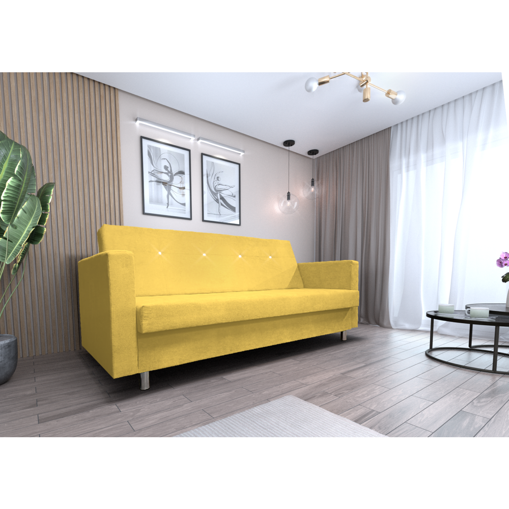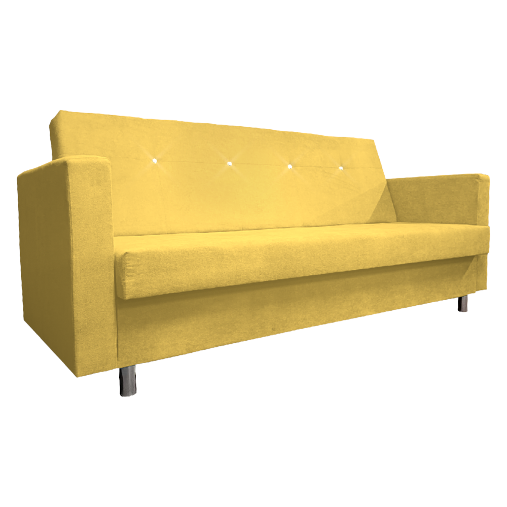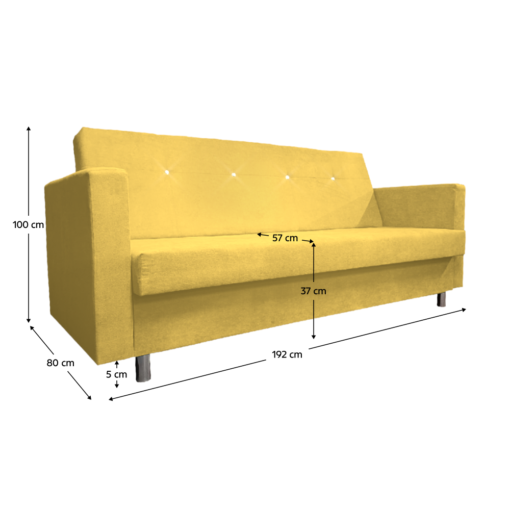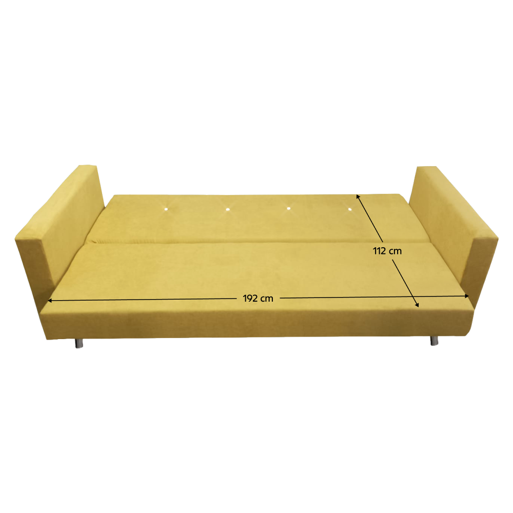 Materiál: látka Soro 40Oderuodolnosť látky podľa testu Martindale: 90 000 oderovFarba: žltáRozmery (ŠxHxV): 192x80x100 cmPlocha na spanie (ŠxD): 112x192 cmVýška sedu: 37 cmHĺbka sedu: 57 cmNa nožičkáchMateriál nožičiek: plastFarba nožičiek: striebornáVýška spodného priestoru od podlahy: 5 cmNosnosť na osobu: 90 kgVýplň: molitanDekoratívne prešívanie s dizajnovými prvkamiRozkladaciaÚložný priestorPraktickáModernáDodávané v demonte