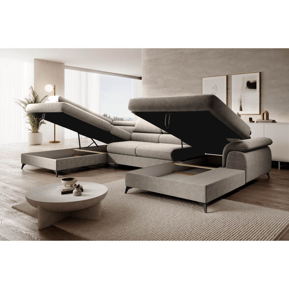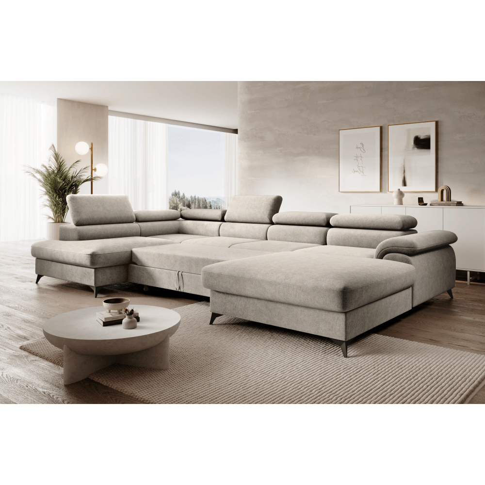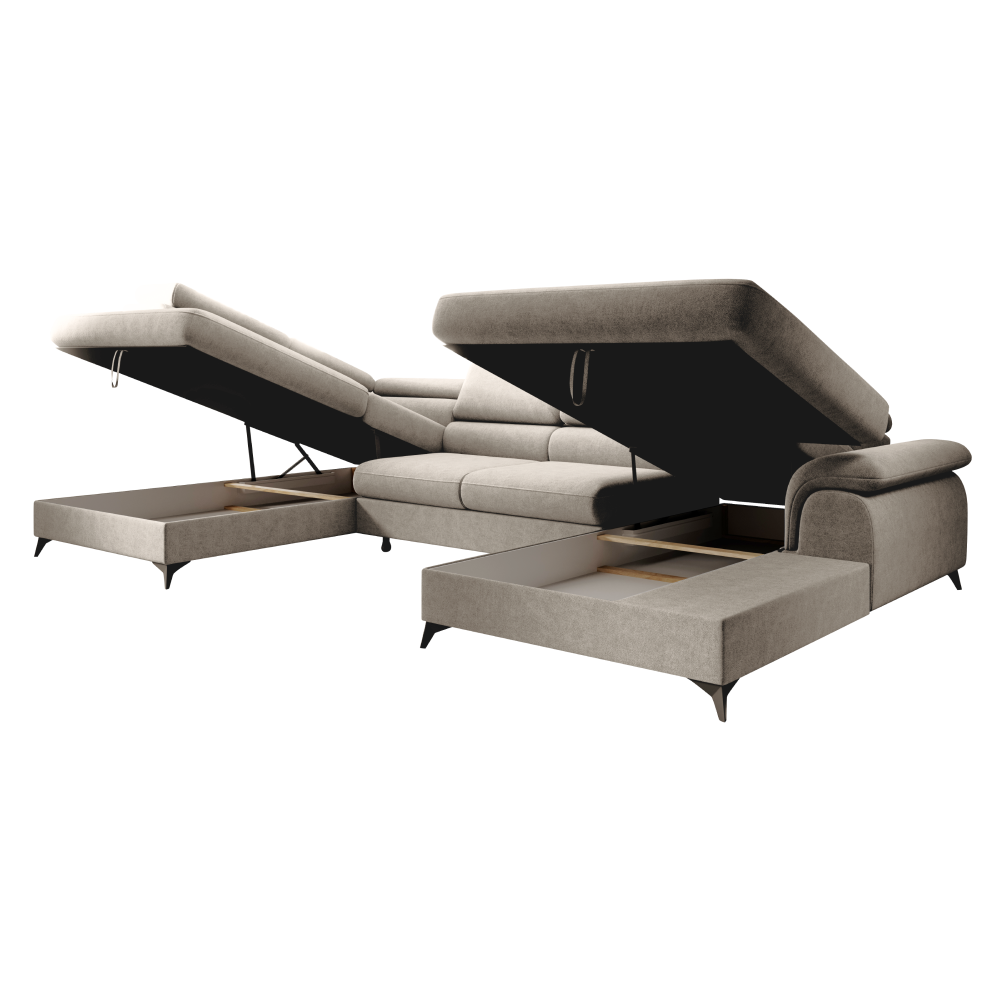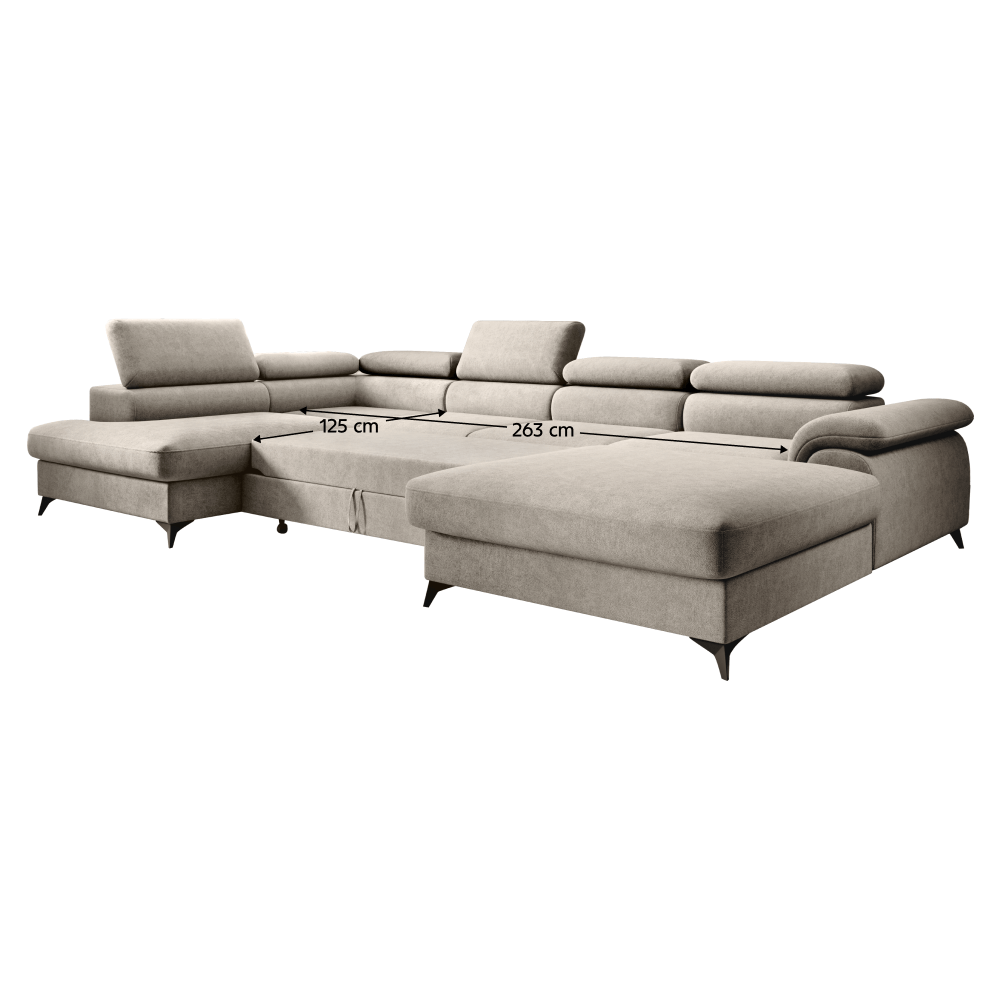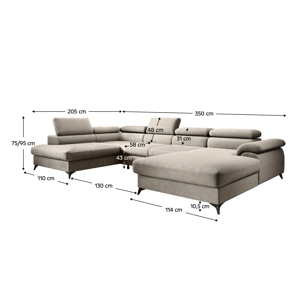 Materiál: látka Whisper 02Oderuodolnosť textílie podľa testu Martindale: 100 000 oderovFarba: béžováRozmery (ŠxHxV): 350x205x75/95 cmPlocha na spanie (ŠxD): 125x263 cmVýška sedu: 43 cmHĺbka sedu: 58 cmRozmer medzi otomanmi: 130 cmŠírka menšieho otomanu: 110 cmŠírka väčšieho otomanu: 114 cmVýška opierky na chrbát: 52 cmNa nožičkáchMateriál nožičiek: kovFarba nožičiek: čiernaVýška spodného priestoru od podlahy: 10,5 cmVýplň: pružina falista+pur penaRozkladaciaCeločalúnenáĽavé prevedenieTvar URohováS úložným priestorom6 polohovateľných opierok hlavy5 stupňové polohovanie opierokDodávané v demonteMožnosť objednania v 6 farebných prevedeniach látky Whisper v cene 1 729 Eur. Pri individuálnej objednávke je potrebné zaplatiť 10% zálohu z danej sumy. Po uhradení zálohy bude Vaša požiadavka zadaná do výroby. Dodacia lehota 6-8 týždňov.