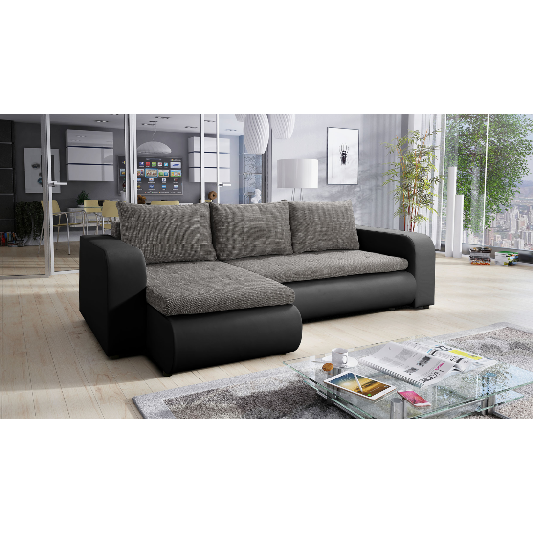 KONDELA Rozkladacia sedacia súprava, čierna/sivá, ľavá, BURAN ROH