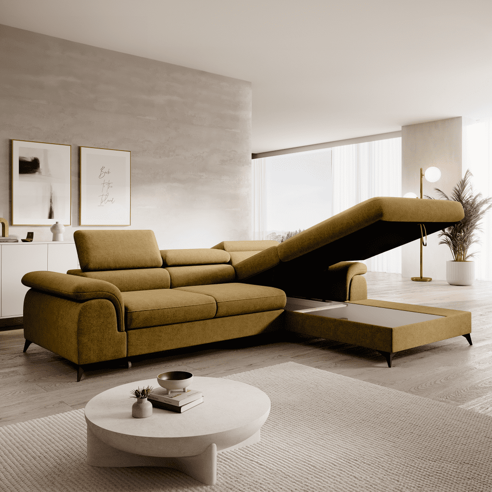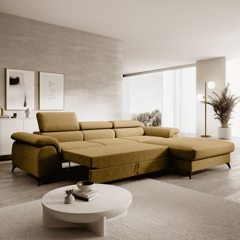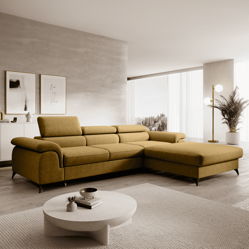 KONDELA Rozkladacia sedacia súprava, horčicová, pravá, HORTY ROH