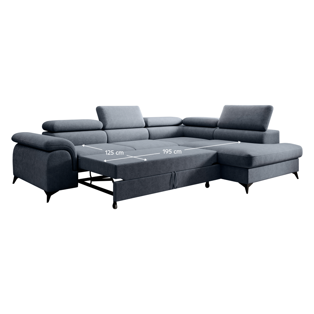 Materiál: látka Whisper 15Oderuodolnosť textílie podľa testu Martindale: 100 000 oderovFarba: siváRozmery (ŠxHxV): 275x205x75/95 cmPlocha na spanie (ŠxD): 125x195 cmVýška sedu: 43 cmHĺbka sedu: 58 cmRozmer sedacej časti: 140 cmŠírka otomanu: 105 cmNa nožičkáchMateriál nožičiek: kovFarba nožičiek: čiernaVýška spodného priestoru od podlahy: 10,5 cmVýplň: pružina falista+pur penaRozkladaciaCeločalúnenáPravé prevedenieTvar LRohováS úložným priestorom5 polohovateľných opierok hlavy5 stupňové polohovanie opierokDodávané v demonteMožnosť objednania v 6 farebných prevedeniach látky Whisper v cene 1 269 Eur. Pri individuálnej objednávke je potrebné zaplatiť 10% zálohu z danej sumy. Po uhradení zálohy bude Vaša požiadavka zadaná do výroby. Dodacia lehota 6-8 týždňov.