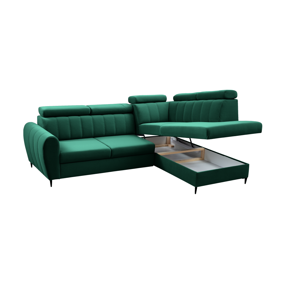 KONDELA Rozkladacia sedacia súprava, smaragdová, pravá, KORIO L
