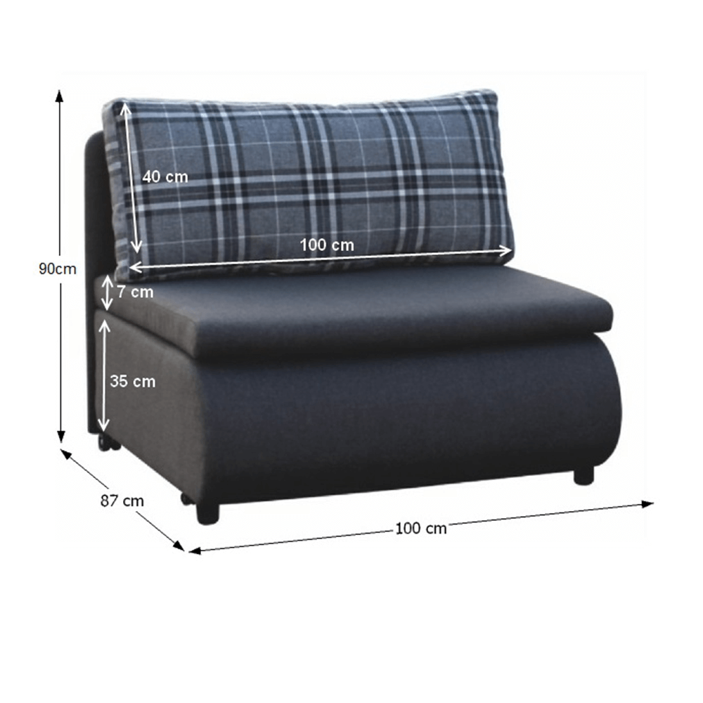 Moderné rozkladacie kreslo KENY New s úložným priestorom, materiál: látka Savana 05 sivá/vankúš vzor karo Oderuodolnosť textílie podľa testu Martindale: 80 000 oderov rozmery: ŠxVxH: 100x90x87 cm, plocha na spanie: ŠxD: 100x196 cm. Výška spodného priestoru od podlahy: 5 cm Nosnosť: 70 kg Možnosť objednania v 3 farebných prevedeniach látky Savana v kombinácií so vzorkovanou látkou v cene 309 Eur. Pri individuálnej objednávke je potrebné zaplatiť 10% zálohu z danej sumy. Po uhradení zálohy bude Vaša požiadavka zadaná do výroby. Dodacia lehota 8-10 týždňov.
