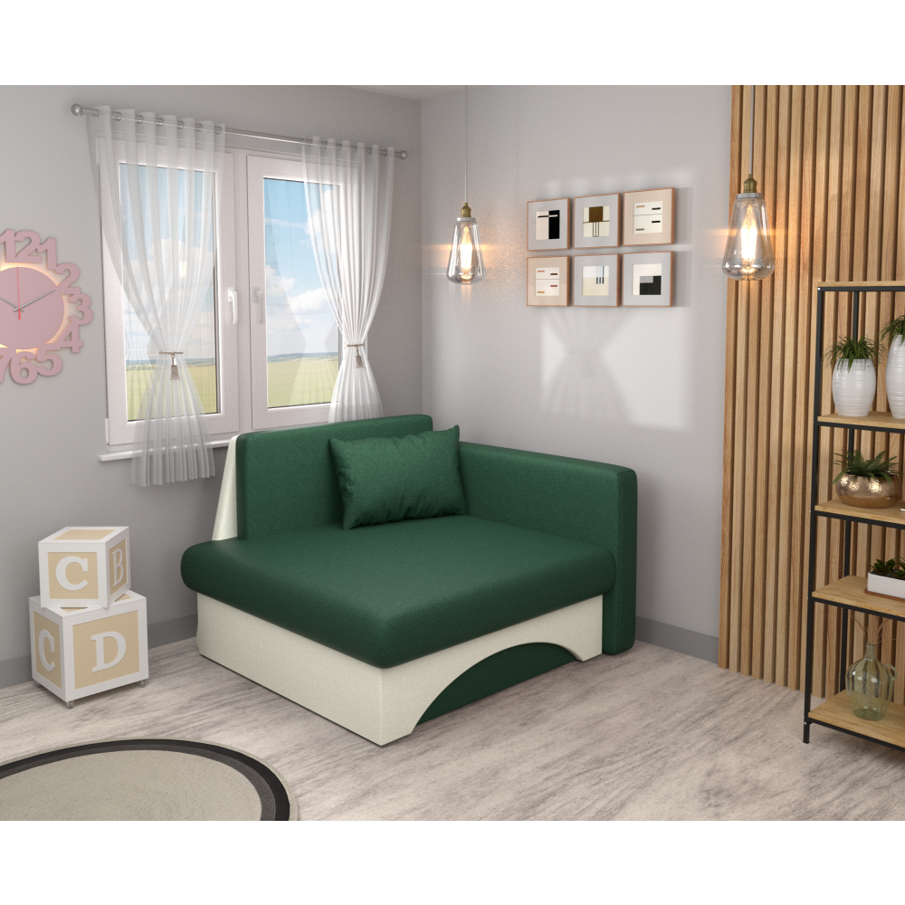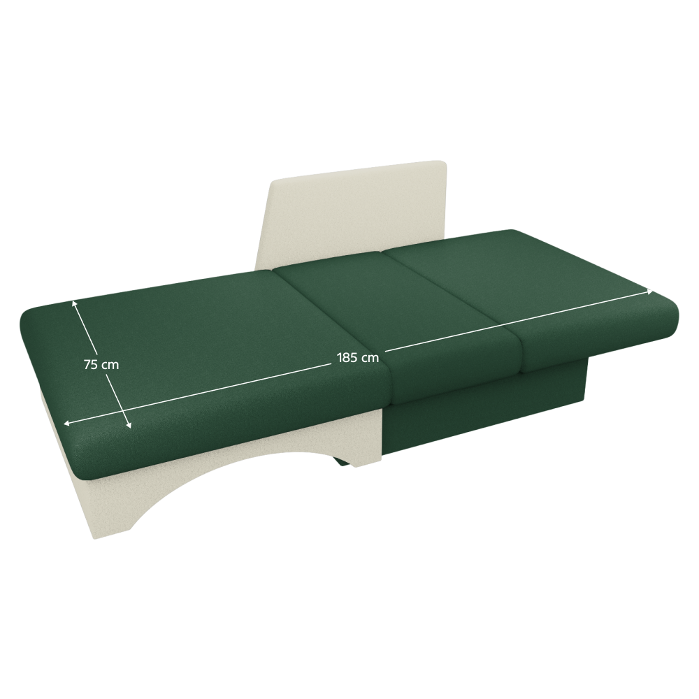 Materiál: látka Malmo 37/05Oderuodolnosť textílie podľa testu Martindale: 30 000 oderovFarba: zelená/bežováRozmery (ŠxHxV): 104x78x70 cmPlocha na spanie: 75x185 cmVýška sedu: 34,5 cmHĺbka sedu: 57 cmŠírka sedu: 92 cmVýška opierky na ruku od zeme: 59 cmRozmery opierky na chrbát (ŠxV): 75x36 cmNosnosť na osobu: 90 kgDodávané s vankúšomRozmery vankúša (ŠxV): 48x40cmRozkladacieÚložný priestorPravé prevedenieVýplň: pur pena T28Dodávané v monte
