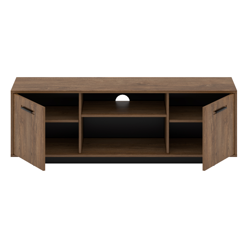 Materiál: DTD laminovaná/MDFFarba: dub bolzano/čiernaRozmery (ŠxHxV): 150x42x51,2 cmHrúbka materiálu: 16 mmDve skrinkyV skrinkách policeOtvorený úložný priestor s policouOtvor na vývod káblovNa podstavciVýška spodného priestoru od podlahy: 5 cmKovové úchytkyOriginálny dizajnKrásna kresba drevaDo tradičného aj moderného interiéruDo obývačky, pracovne aj študentskej izbyDodávaná v demonte