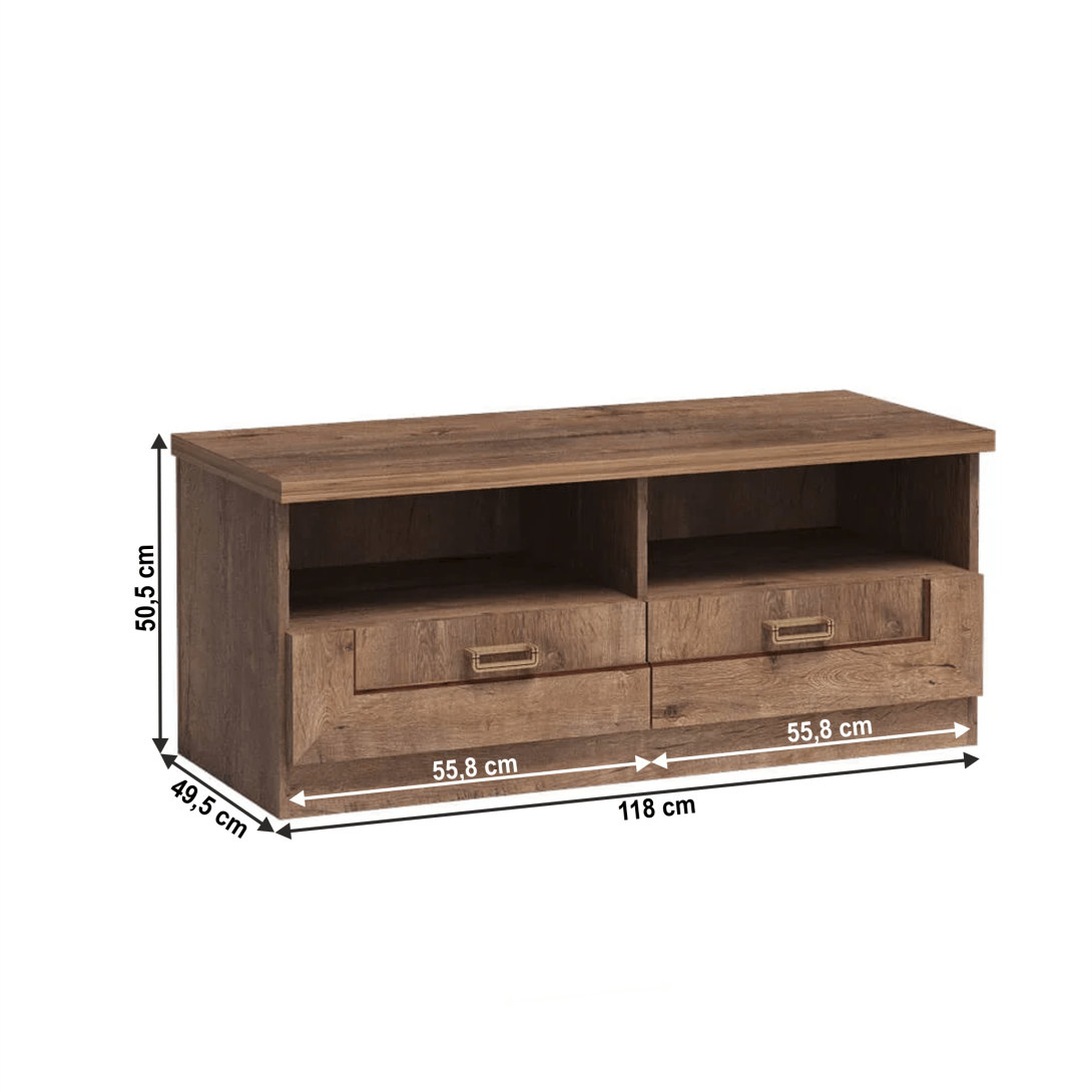 RTV stolík TEDY TYP T11Materiál: DTD laminovaná/ABS hrany/MDFFarba: dub lefkasRozmery (ŠxHxV): 118x50x50 cmHrúbka materiálu: 32 mmHrúbka materiálu zvyšné časti: 16 mmDodávané v demonte.