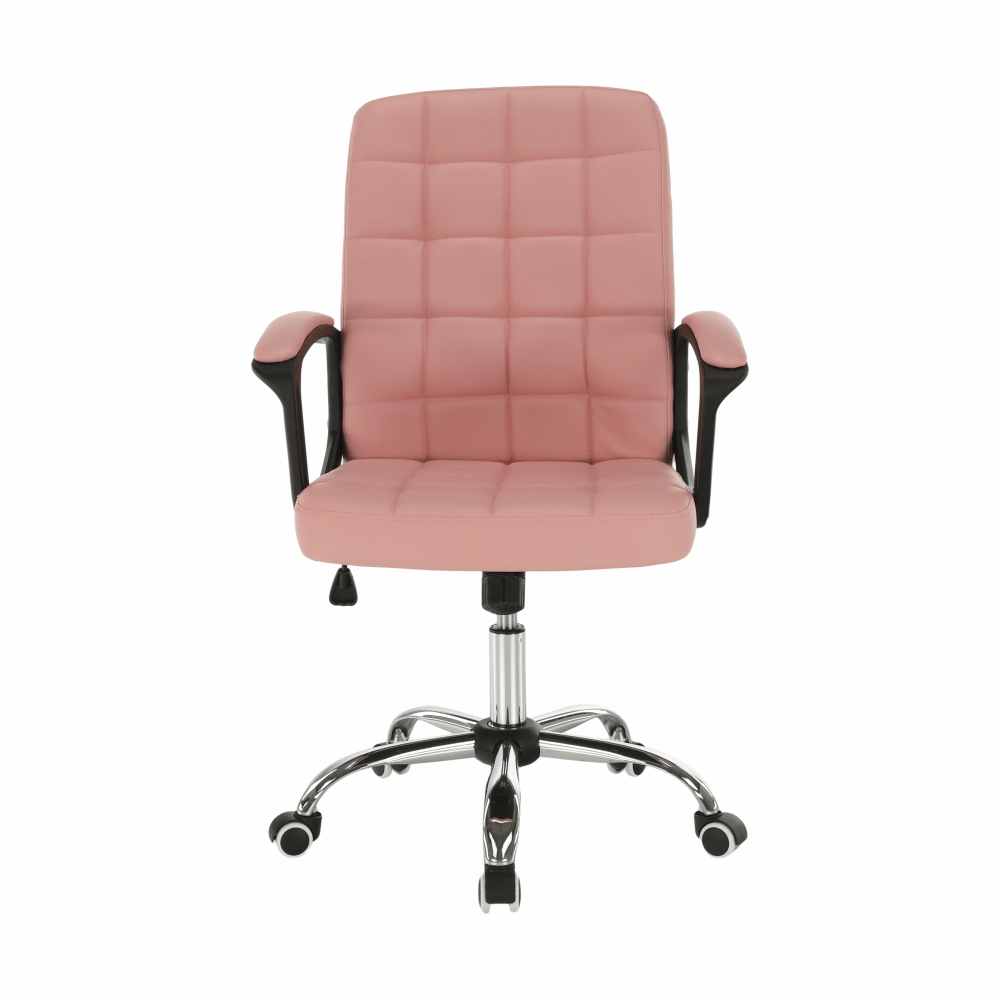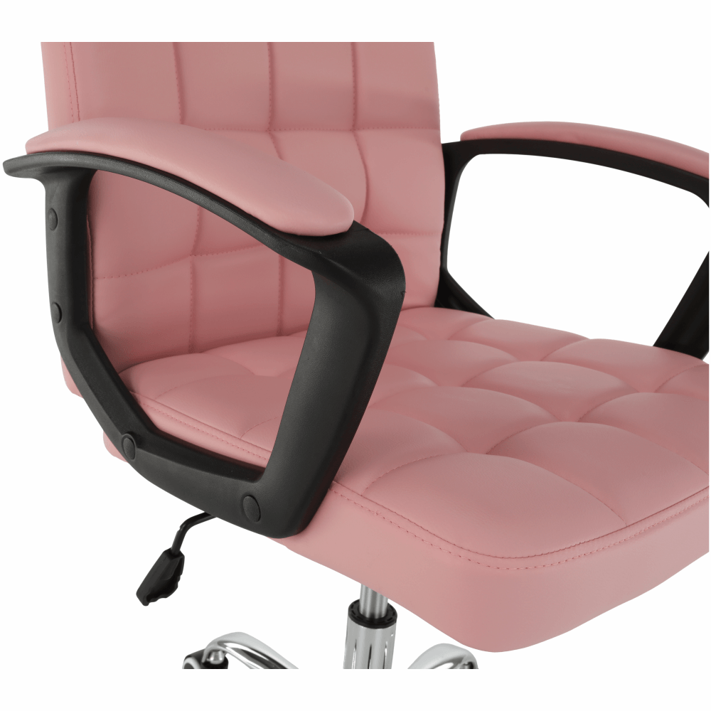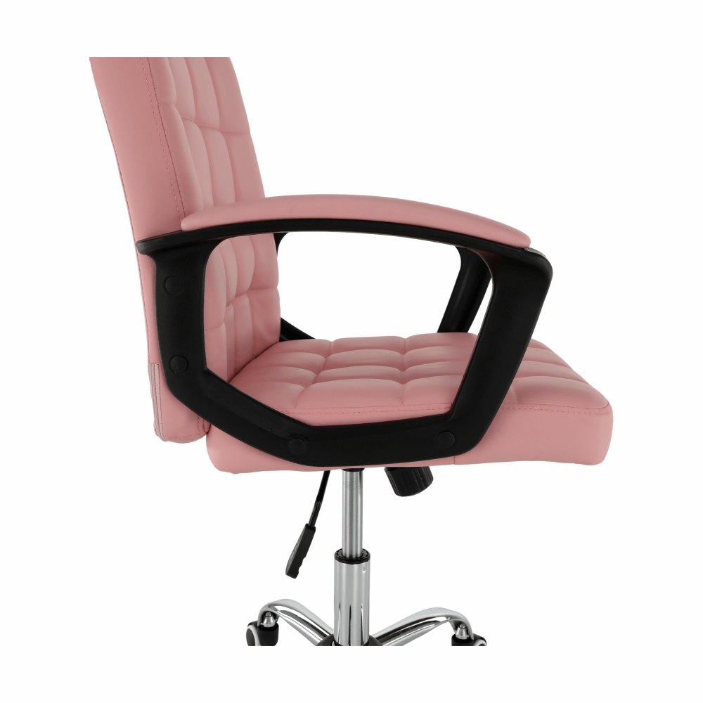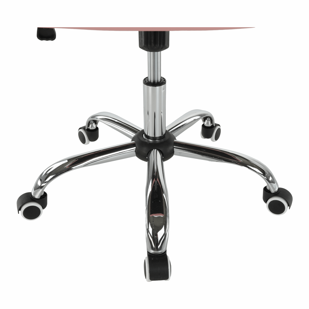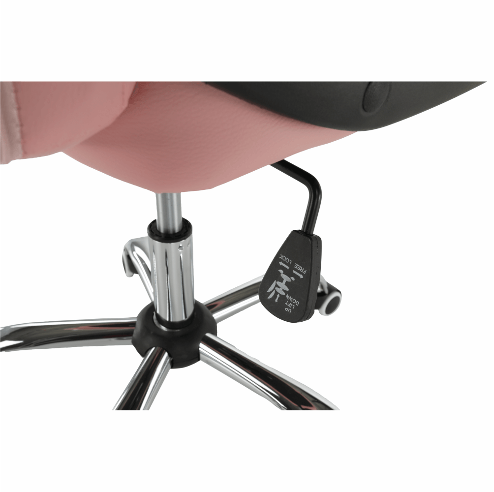 Materiál čalúnenie: ekokožaOderuodolnosť textílie podľa testu Martindale: 100 000 oderovFarba: ružováMateriál konštrukcia: plast/kovFarba: čierna/chrómRozmery (ŠxHxV): 60x61x96-106 cmNastaviteľná výška sedu : 44-54 cmŠírka sedu : 48 cmHĺbka sedu : 48 cmOpierka chrbta (ŠxV): 47x60 cmMaximálna nosnosť kresla: 110 kgHojdací mechanizmusDekoratívne šitieČalúnené opierky na rukyUniverzálne kolieskaVhodné na mäkké aj tvrdé podlahyDodávané v demonte