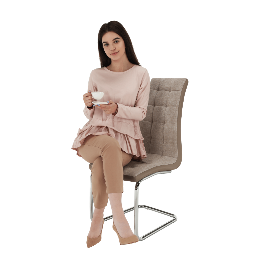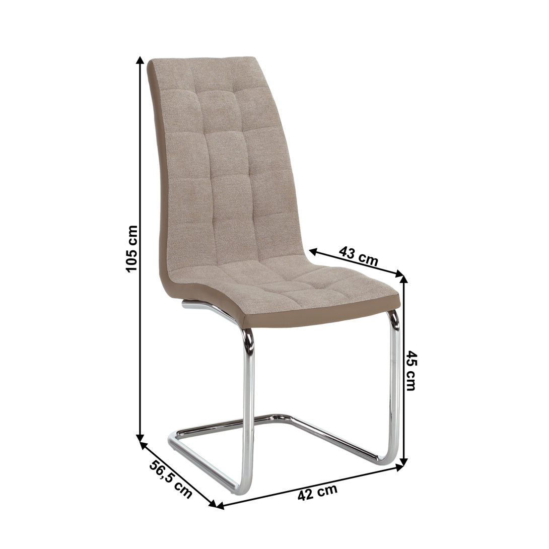 Jedálenská stolička SALOMA NEW.Materiál: látka/ekokoža/chrómOderuodolnosť textílie podľa testu Martindale: 50 000/100 000 oderovFarba: béžová.Rozmery (ŠxHxV): 42x56,5x105 cmVýška sedu: 45 cmNosnosť: 110 kg