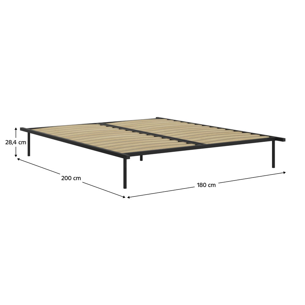 Materiál: kov/brezové drevoFarba: čierna/prírodnáRozmery (ŠxHxV): 180x200x28,4 cmRošt je samonosný14 lamielŠírka lamiel: 5,5-5,3 cmHrúbka lamiel: 7,8-8,1 cmPriestor medzi lamelami: 5,3 cmNosnosť na osobu: 120 kgVhodný pre všetky druhy matracovMožnosť zakúpiť matrac z našej ponukyDodávané so stredovou podpornou nohouMožnosť používať ako samostatné lôžkoDodávaný v demonte