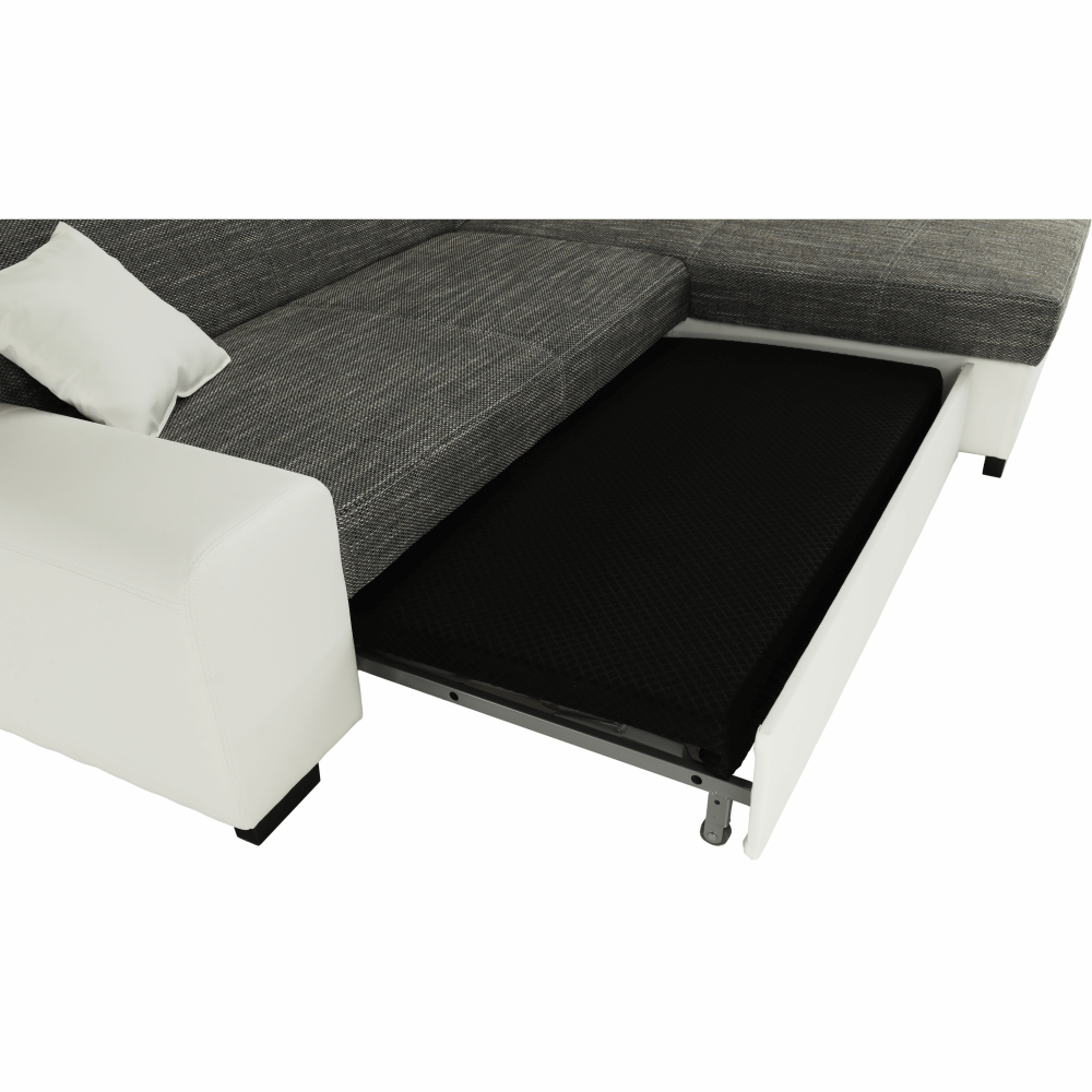 Celočalúnená rohová rozkladacia sedacia súprava s úložným priestorom, P prevedenie,MINERVA Materiál: ekokoža/látka Oderuodolnosť textílie podľa testu Martindale: 55 000 oderov Oderuodolnosť ekokože podľa testu Martindale: 100 000 oderov Farba: biela/sivý melír Berlin 01 Rozmery (ŠxHxV): 260x175x75 cm Plocha na spanie (ŠxD): 135x195 cm Výška sedu: 43 cm Hĺbka sedu: 65 cm Výška spodného priestoru od podlahy: 5 cm Nosnosť na osobu: 90 kg Dodávané v demonte. Možnosť objednania v 4 farebných odtieňoch ekokože a v 3 farebných odtieňoch látky Berlin v cene 699 Eur.Pri individuálnej objednávke je potrebné zaplatiť 10% zálohu z danej sumy. Po uhradení zálohy bude Vaša požiadavka zadaná do výroby. Dodacia lehota 6-8 týždňov.
