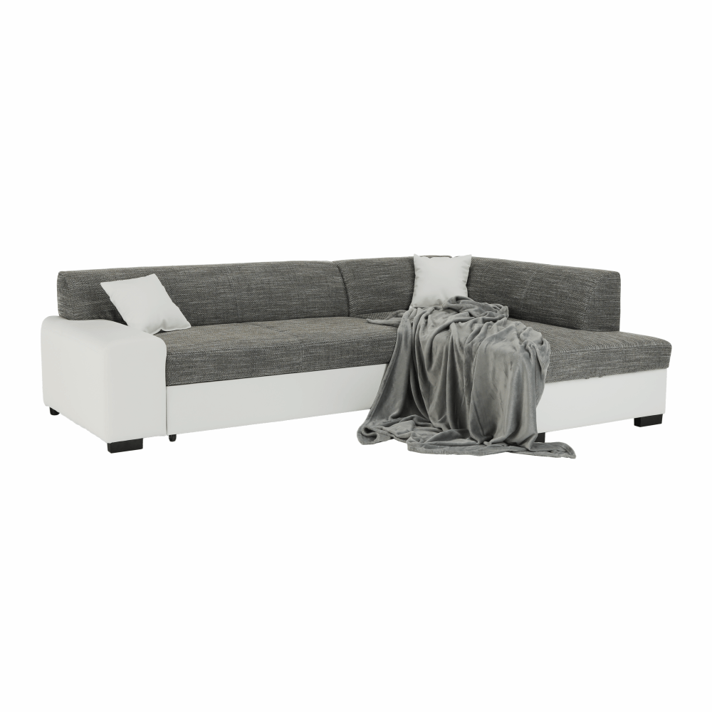 KONDELA Sedacia súprava, biela/sivý melír, pravá, MINERVA