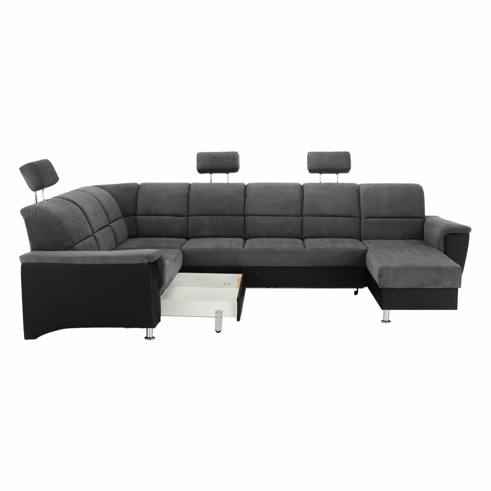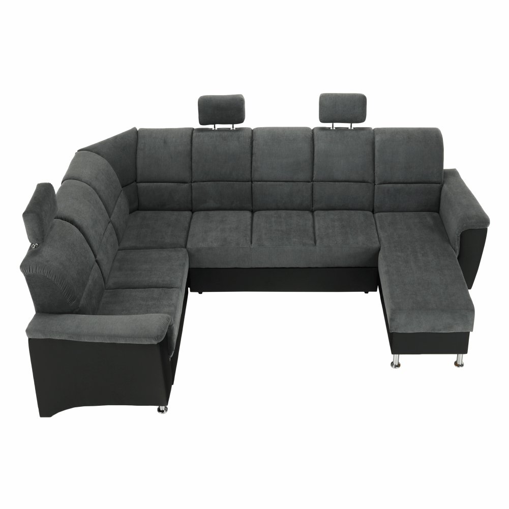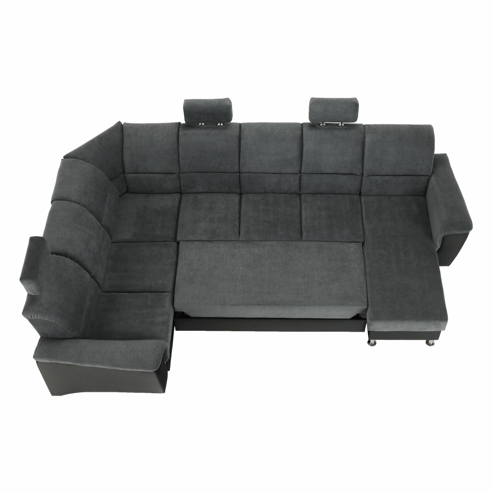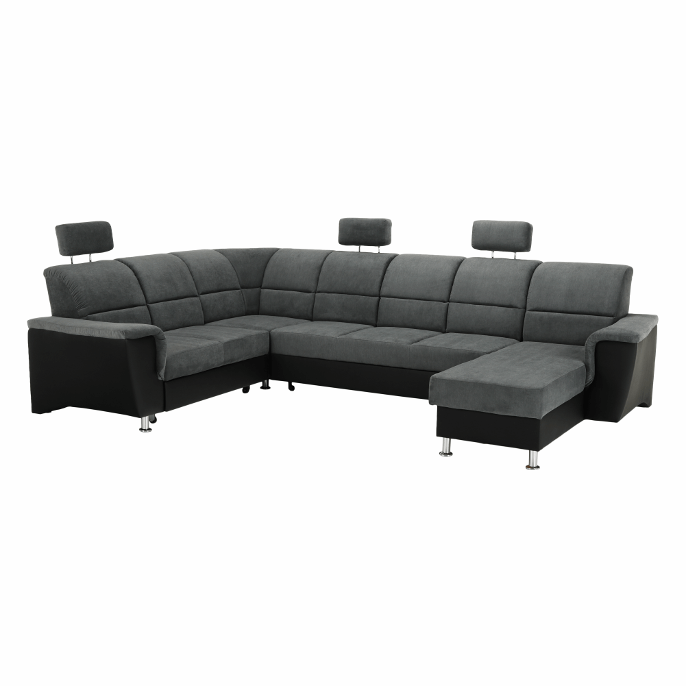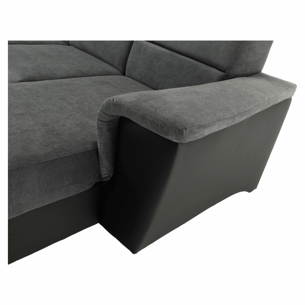 KONDELA Sedacia súprava, ekokoža čierna/látka tmavosivá, ľavá, SANTIAGO U