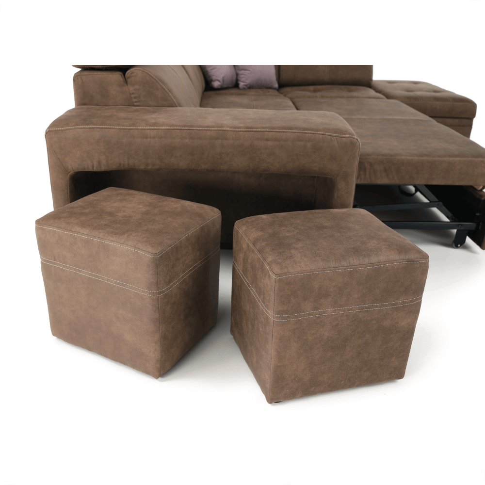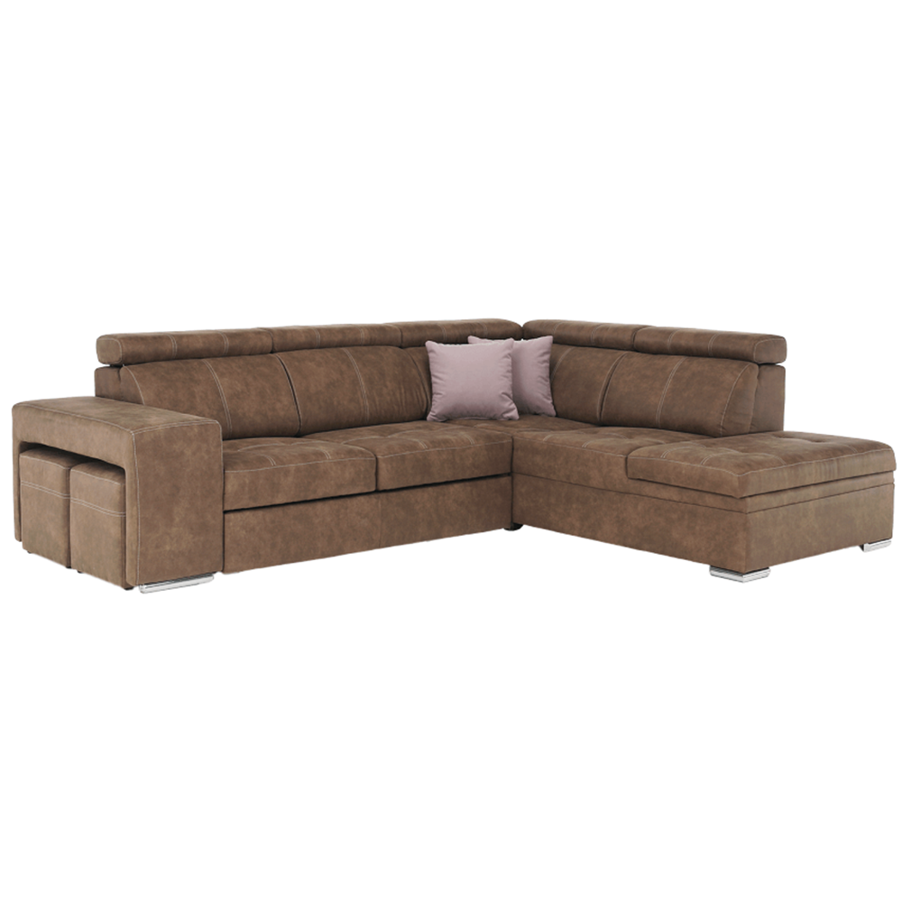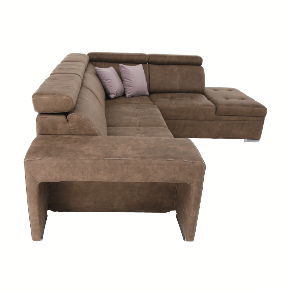 Celočalúnená rohová rozkladacia sedacia súprava s úložným priestorom a s polohovacím záhlavím.Materiál: Látka Preston/ látka JasmineOderuodolnosť textílie Preston podľa testu Martindale: 68 000 oderovOderuodolnosť textílie Jasmine podľa testu Martindale: 90 000 oderovFarba: hnedá/svetlofialováPravé prevedenie.Rozmery (ŠxHxV): 275x220x85/100 cm, plocha na spanie (ŠxD): 120x190 cmVýška spodného priestoru od podlahy: 5 cmVýška sedu: 43 cmHĺbka sedu: 53 cmŠírka otomanu: 96,5 cm Šírka opierky na ruky: 37 cm Vankúše (ŠxV): 40x40 cm Dodávané s vankúšmi a s dvoma taburetmiNosnosť na osobu: 90 kgDodávané v demonte.Možnosť objednania v 4 farebných prevedeniach látky Preston a Jasmine v cene: 1.389 Eur. Pri individuálnej objednávke je potrebné zaplatiť 10% zálohu z danej sumy. Po uhradení zálohy bude Vaša požiadavka zadaná do výroby. Dodacia lehota 6-8 týždňov.