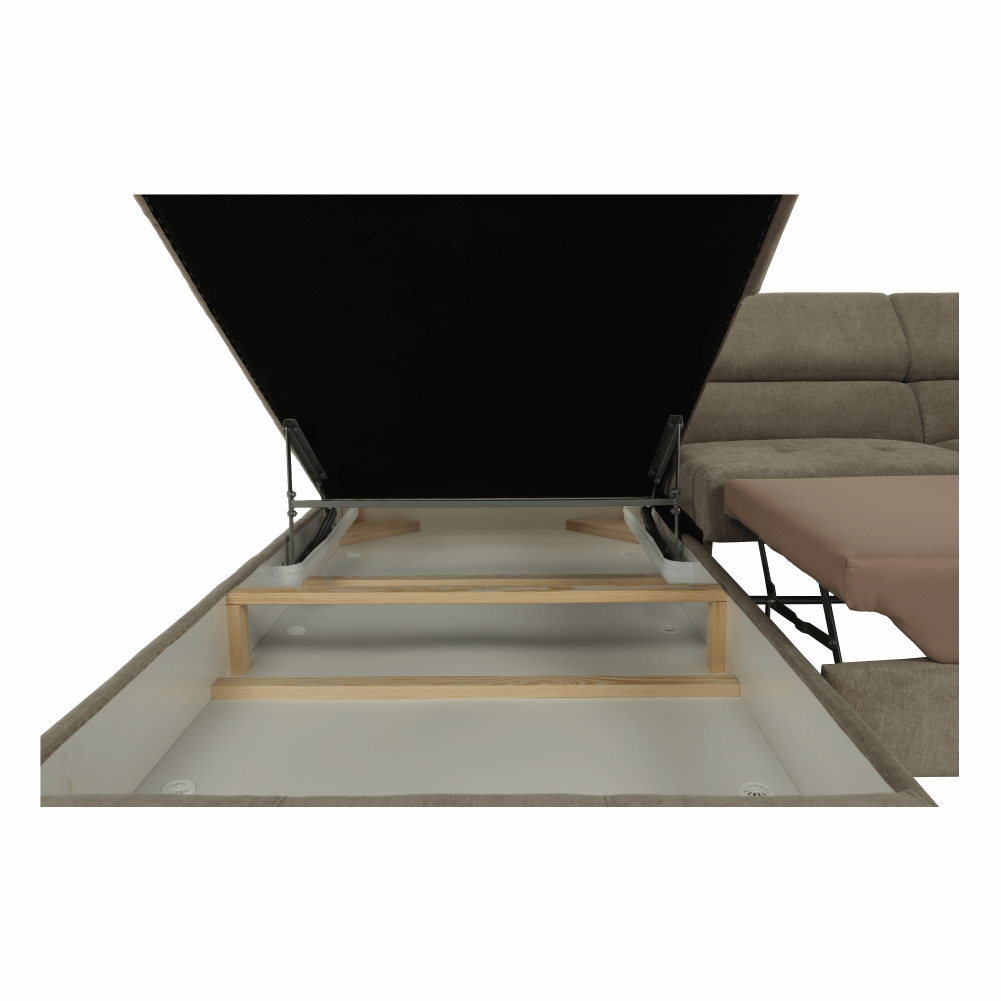 KONDELA Sedacia súprava s úložným priestorom, svetlohnedý melír, látka, ľavá, BUTON R