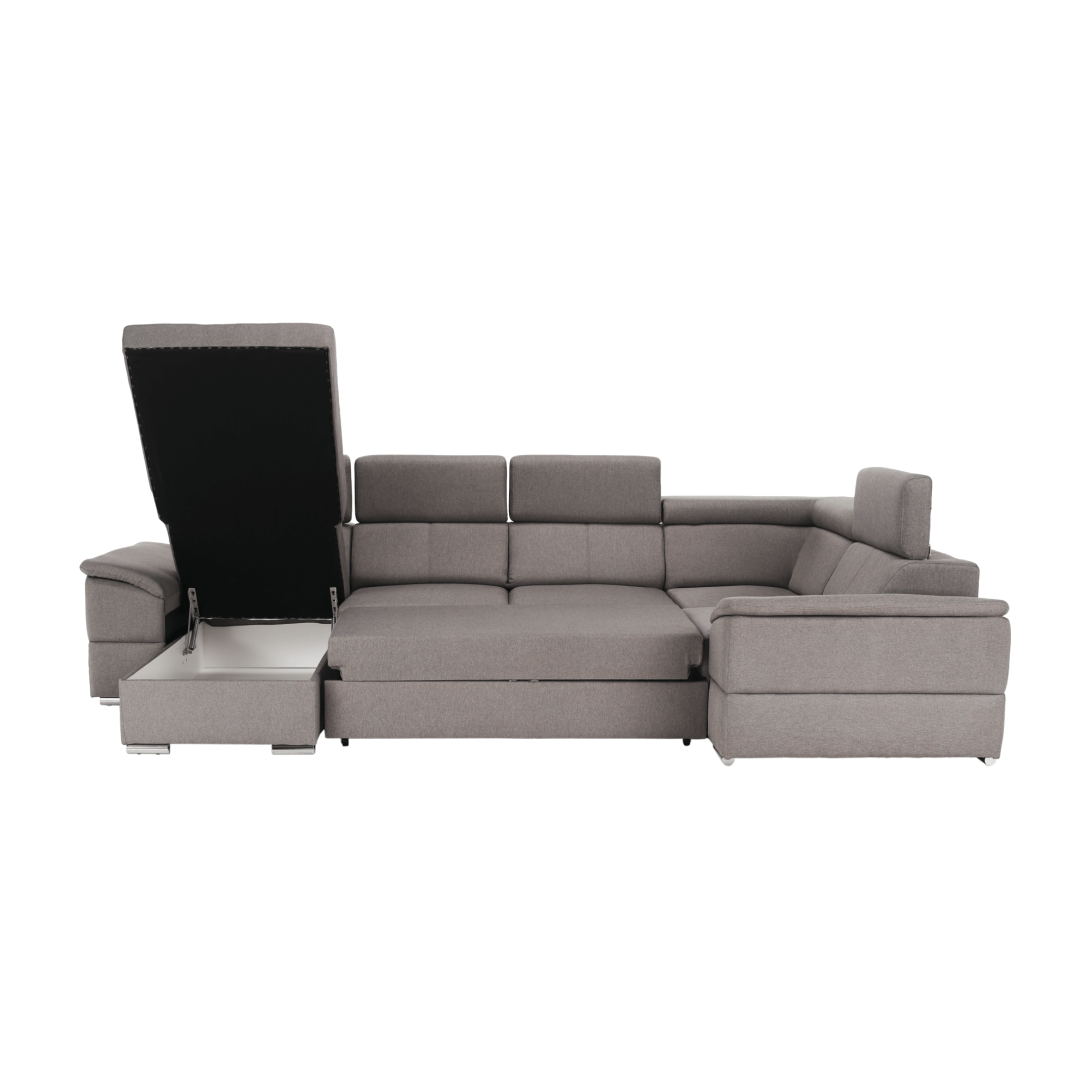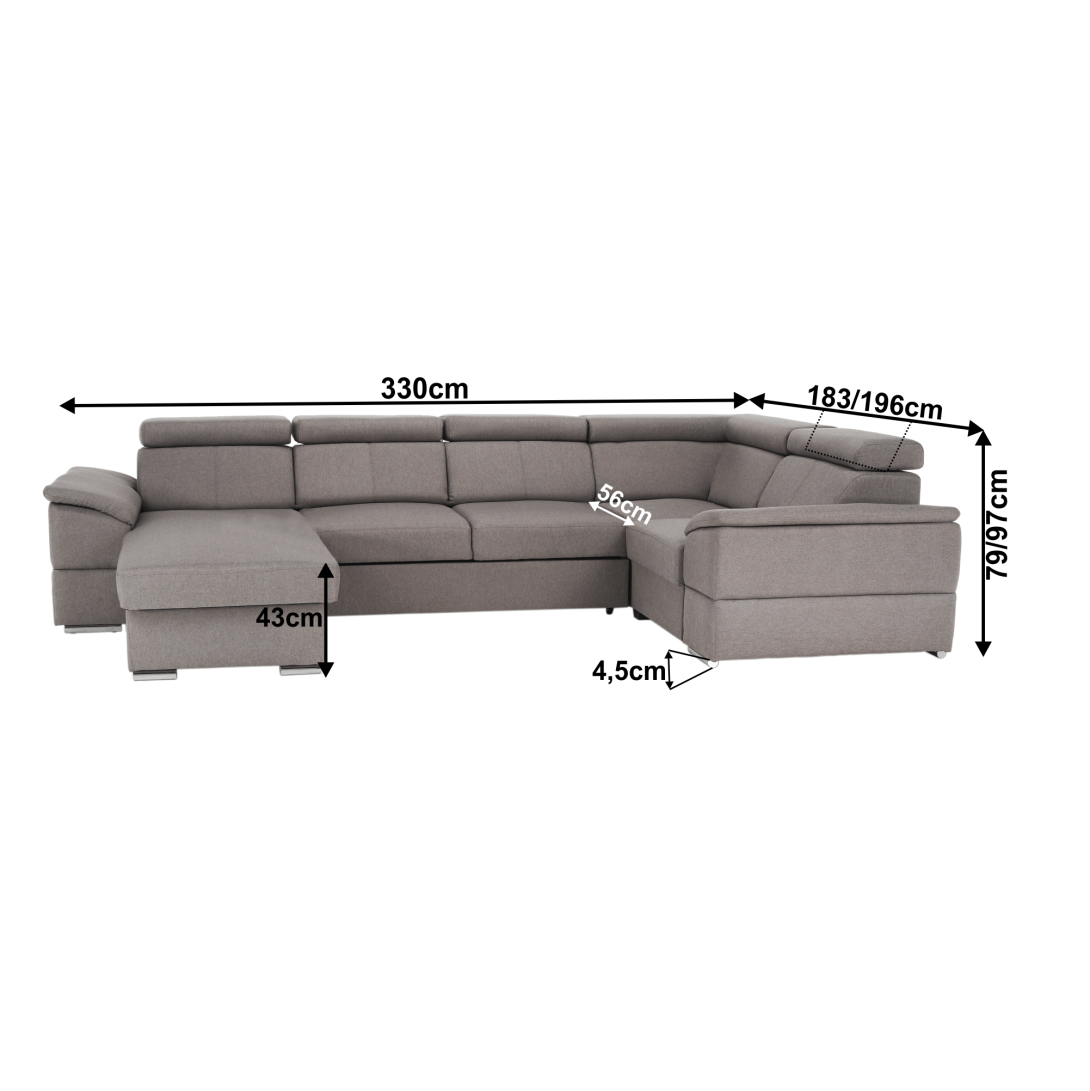 Rohová rozkladacia sedacia súprava, SEGORIA ROH Umateriál: látka MalmoOderuodolnosť textílie podľa testu Martindale: 50 000 oderovfarebné prevedenie: 16 sivohnedá TAUPErozmery: (ŠxHxV): 330x183/196x79/97 cm plocha na spanie: (ŠxD): 130x246 cmVýška spodného priestoru od podlahy: 4,5 cmHĺbka sedu: 56 cmVýška sedu: 43 cmNosnosť na osobu: 90 kgS úložným priestoromPolohovacie opierky hlavyCeločalúnenáĽavé prevedenieVýplň: pružina falista4 polohovacie opierky hlavy 6 stupňové polohovanie opierokDodávané v demonte