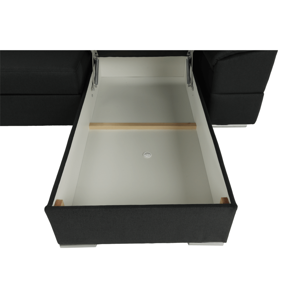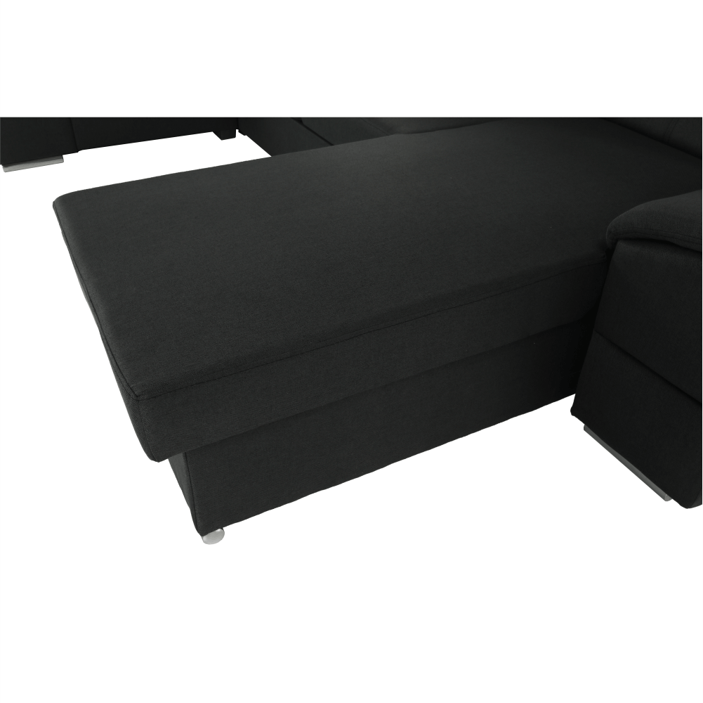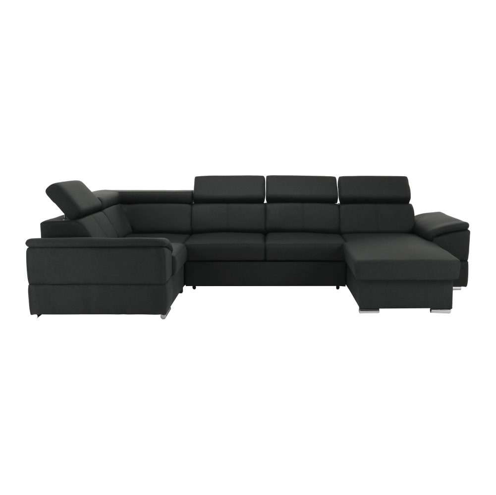 Rohová rozkladacia sedacia súprava, SEGORIA ROH Umateriál: látka MalmoOderuodolnosť textílie podľa testu Martindale: 50 000 oderovfarebné prevedenie: 96 tmavosivározmery: (ŠxHxV): 330x183/196x79/97 cm plocha na spanie: (ŠxD): 130x246 cmVýška spodného priestoru od podlahy: 4,5 cmNosnosť na osobu: 90 kgHĺbka sedu: 56 cmVýška sedu: 43 cmS úložným priestoromPolohovacie opierky hlavyCeločalúnenáPravé prevedenieVýplň: pružina falista4 polohovacie opierky hlavy 6 stupňové polohovanie opierokDodávané v demonte