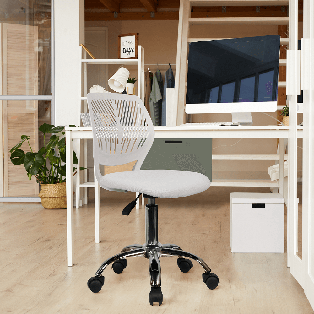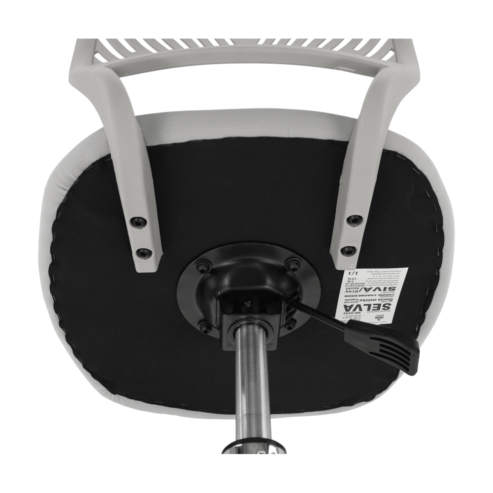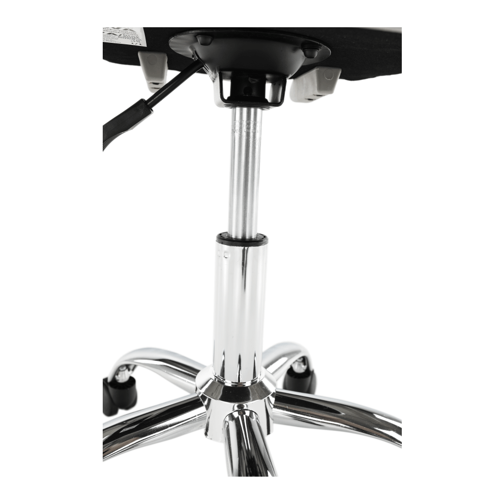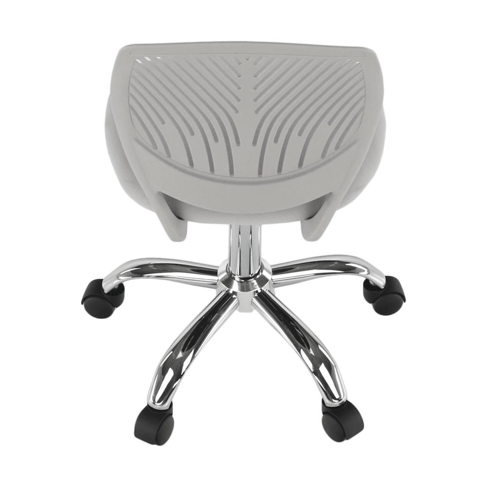 Materiál: polyester/kovOderuodolnosť textílie podľa testu Martindale: 100 000 oderovFarba: sivá/chrómRozmery (ŠxHxV): 53x53x74,5-86,5 cmNastaviteľná výška sedu : 42-54 cmHĺbka sedu : 38 cmŠírka sedu : 40 cmVýška chrbtovej opierky: 32 cmŠírka chrbtovej opierky: 36 cmNosnosť: 80 kgOtočnáS kolieskamiPerforované operadloDodávané v demonte