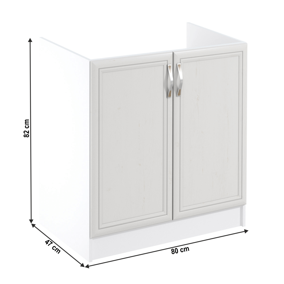 Drezová skrinka D80Z ku kuchyni SICILIAPrevedenie: DTD laminovaná/MDF lištyFarba: biela/sosna AndersenRozmery (ŠxHxV): 80x47x82 cmHrúbka materiálu: 15 mmSpodné skrinky ku kuchyni SICILIA sú dodávané bez pracovnej dosky. Môžete si objednať pracovnú dosku vo farebnom prevedení dub pieskovec v hrúbke 2,8 cm za 49 eur/bm a pracovnú dosku vo farebnom prevedení dub Lancelot v hrúbke 3,8 cm za 56 eur/bm.