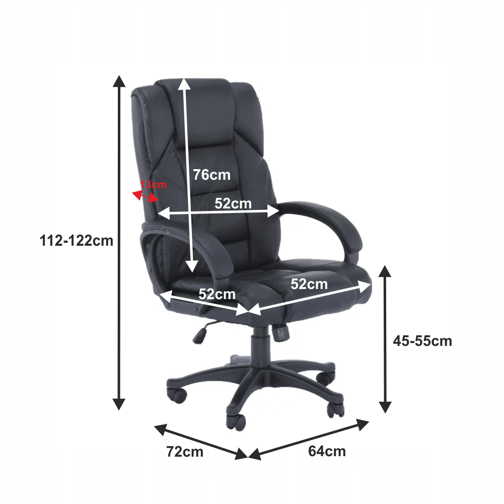 Kancelárske kreslo Materiál: ekokoža/plastOderuodolnosť ekokože podľa testu Martindale: 100 000 oderovFarba: čierna Rrozmery (ŠxHxV): 64x72x112-122 cm. Nosnosť: 110 kg