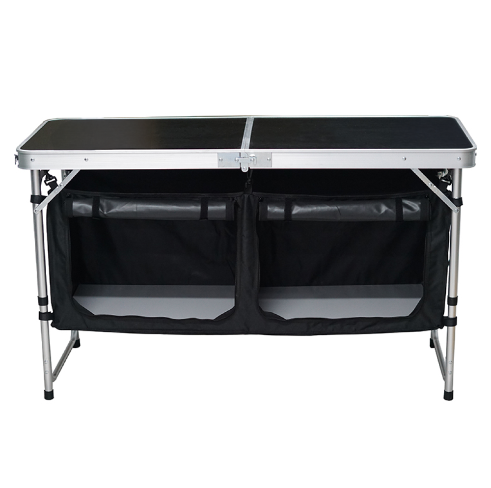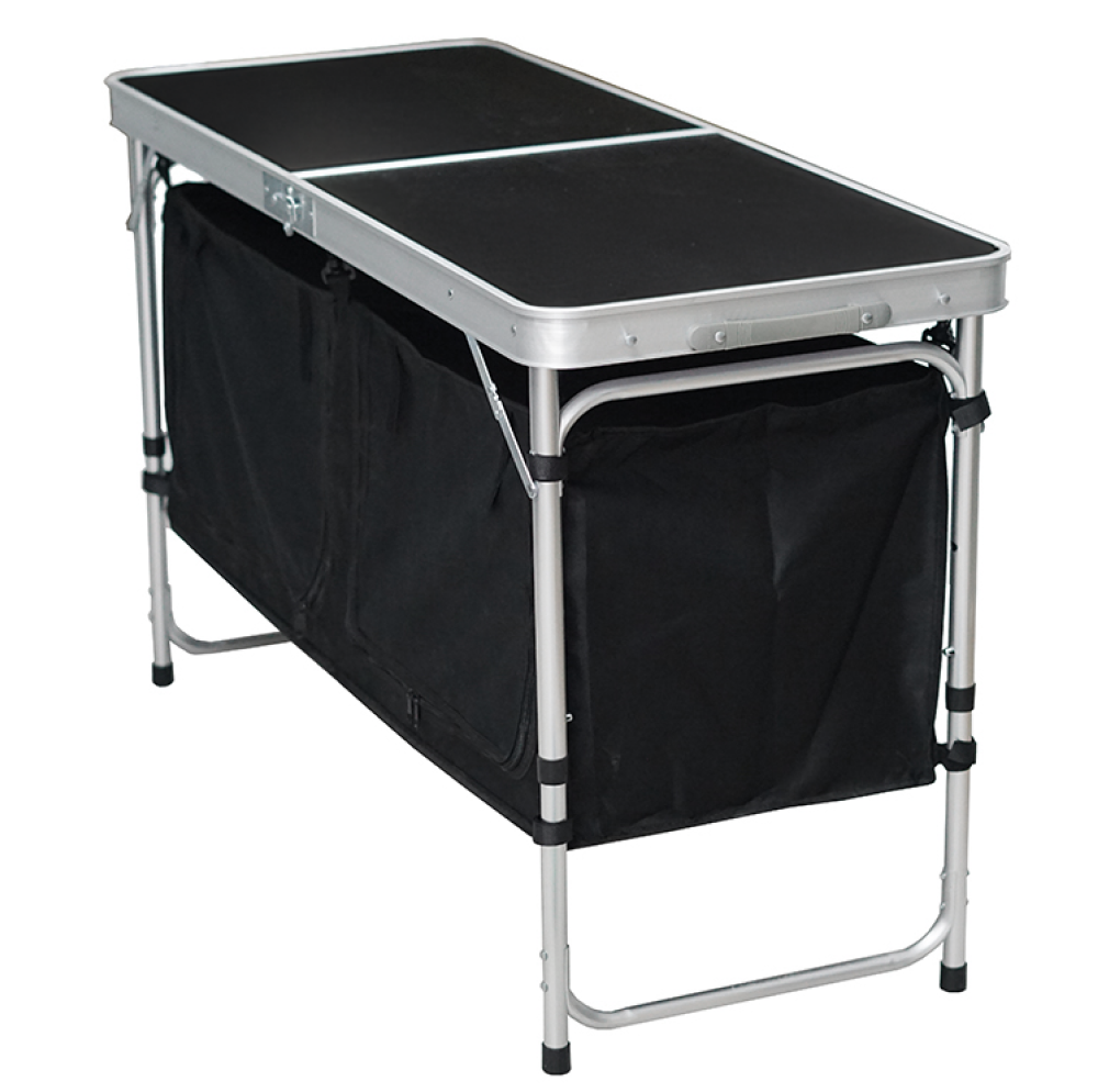 Materiál: hliník/MDF/látkaFarba: sivá/čiernaRozmery rozložený stôl (ŠxHxV): 120x47x54 cmStôl je výškovo nastaviteľnýVýška sa dá nastaviť v troch úrovniachNastaviteľná výška: 54/60/70 cmMožnosť zložiť do praktického boxuRozmery zložený stôl (ŠxHxV): 60x47x10 cmDodávaný s organizéromRozmery organizéra (ŠxHxV): 105x40x40 cm2x priehradka na zipsRozmery priehradky (ŠxV): 46x33 cmMožnosť zložiť organizérĽahký a praktickýSkladacíPrenosnýJednoduchá manipulácia a skladovanieIdeálny na kempovanie a piknikyOdolný voči poveternostným podmienkamVhodný pre 4 osobyHmotnosť: 6,5 kgNosnosť: 30 kgDodávané v monte