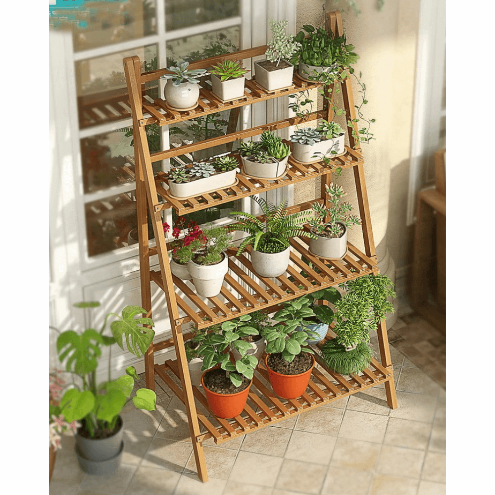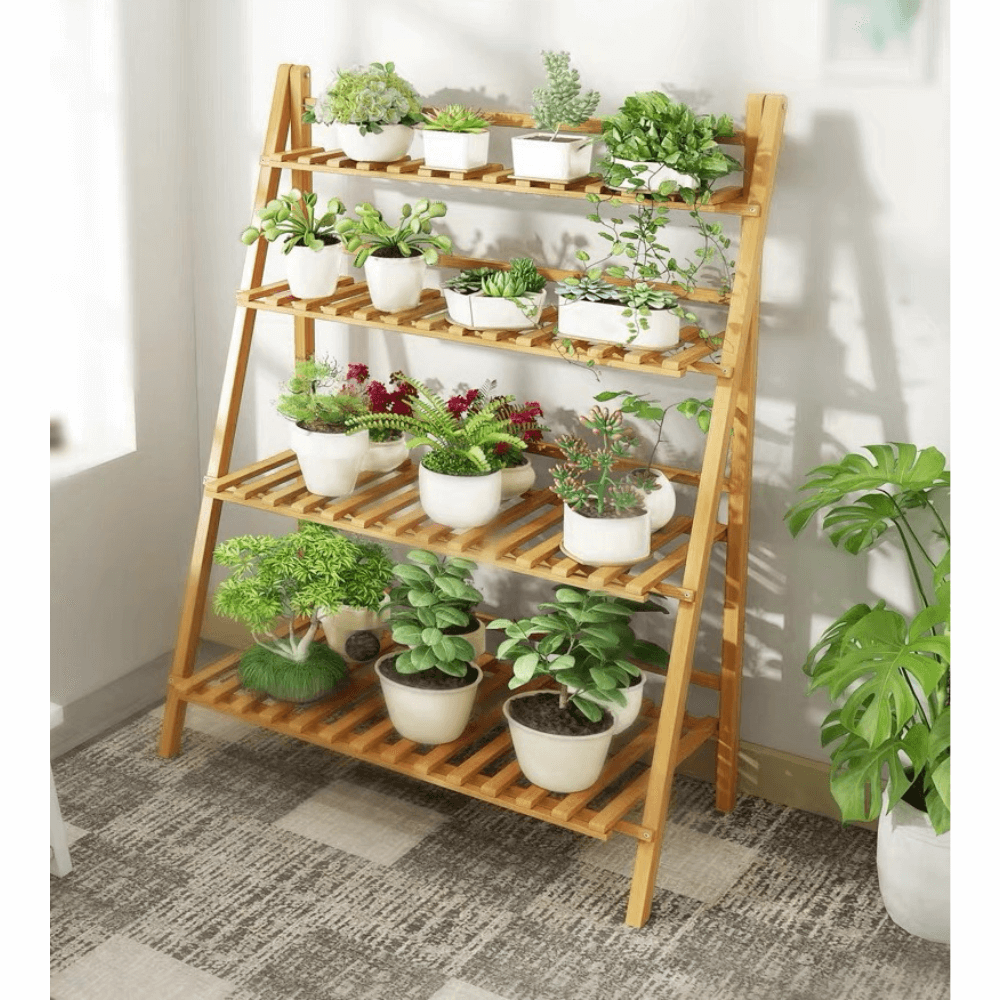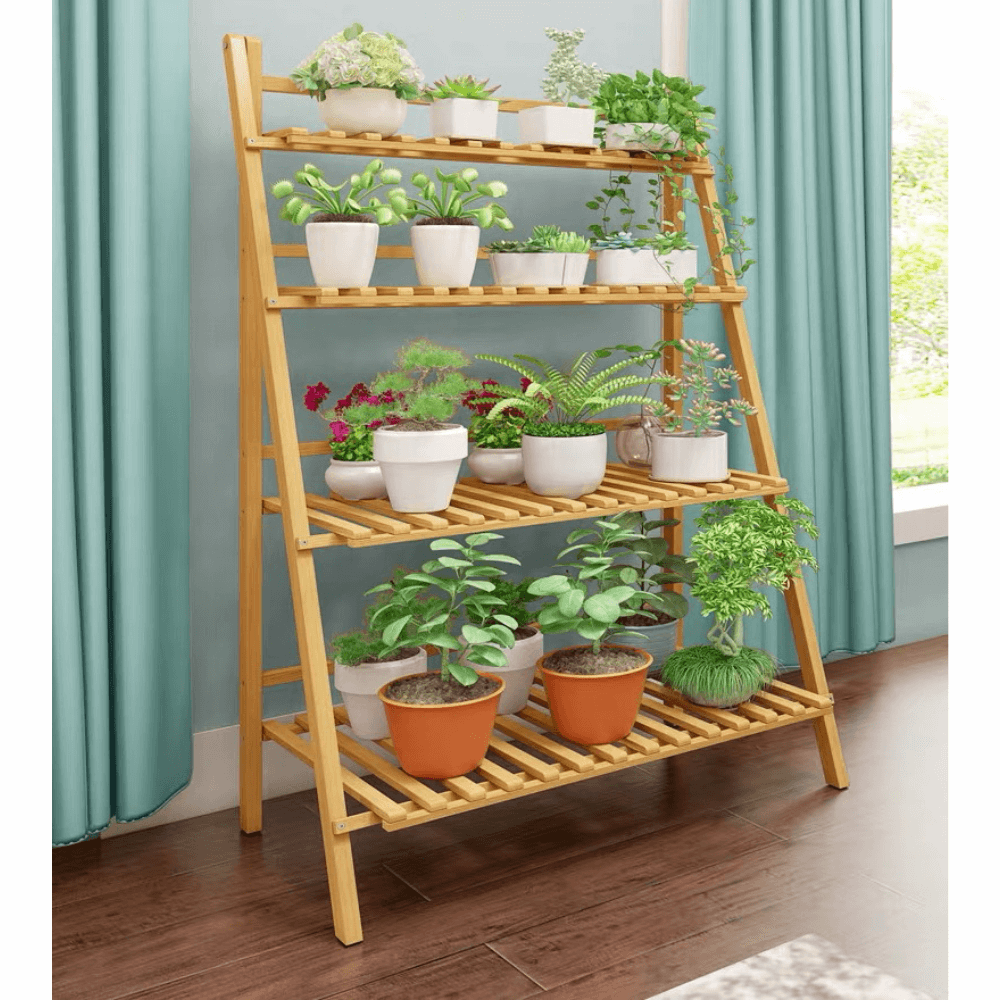 Materiál: bambusFarba: bambusRozmery (ŠxHxV): 70x47x122 cmNosnosť na policu: 10 kgŠtyri policeSkladacíZložený nezaberie veľa miestaJeden pár rukavíc grátisVhodný do interiéru aj exteriéruSet ručného záhradného náradia grátisDodávané v demonte