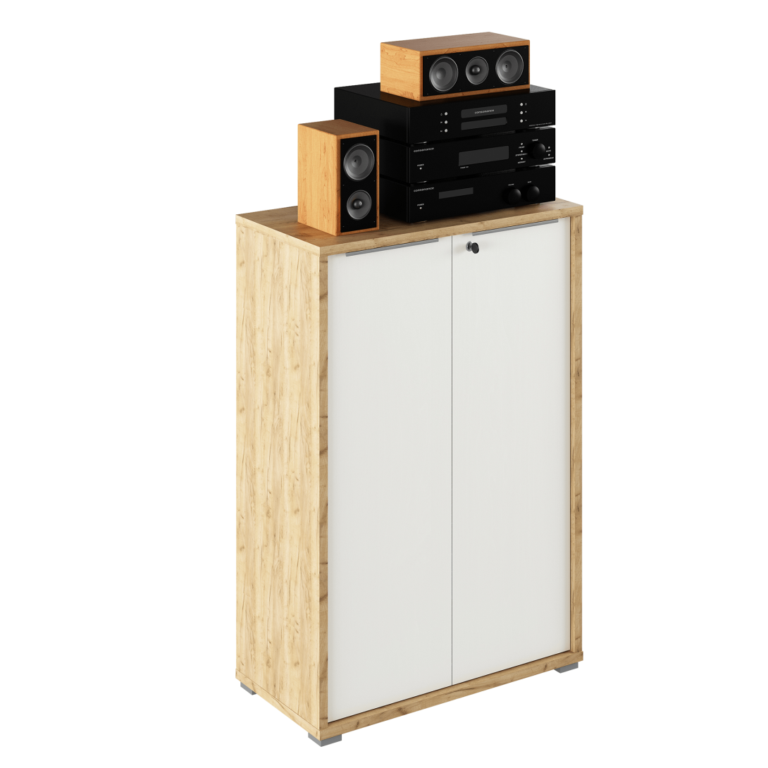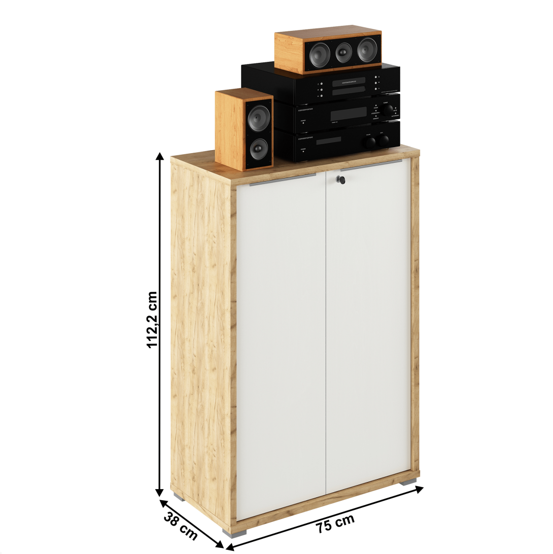 Skriňa RIOMA TYP 09Materiál: DTD laminovanáFarba: dub artisan/bielaRozmery (ŠxHxV): 75x38x112,2 cmHrúbka materiálu: 16/22 mmDvojdverováDve policeKovové úchytkySo zámkomZámok je na dvierkachKvalitný slovenský výrobokDodávané v demonte