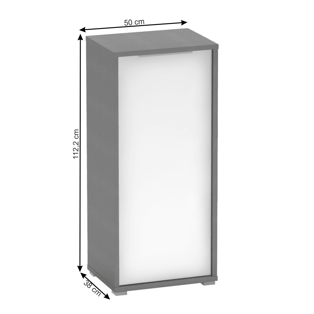 Skrinka RIOMA NEW TYP 10Farebné prevedenie: grafit/bielaMateriál: DTD laminovaná Rozmery (ŠxHxV): 50x38x112,2 cm Hrúbka materiálu: 16/22 mmDodávané v demonte