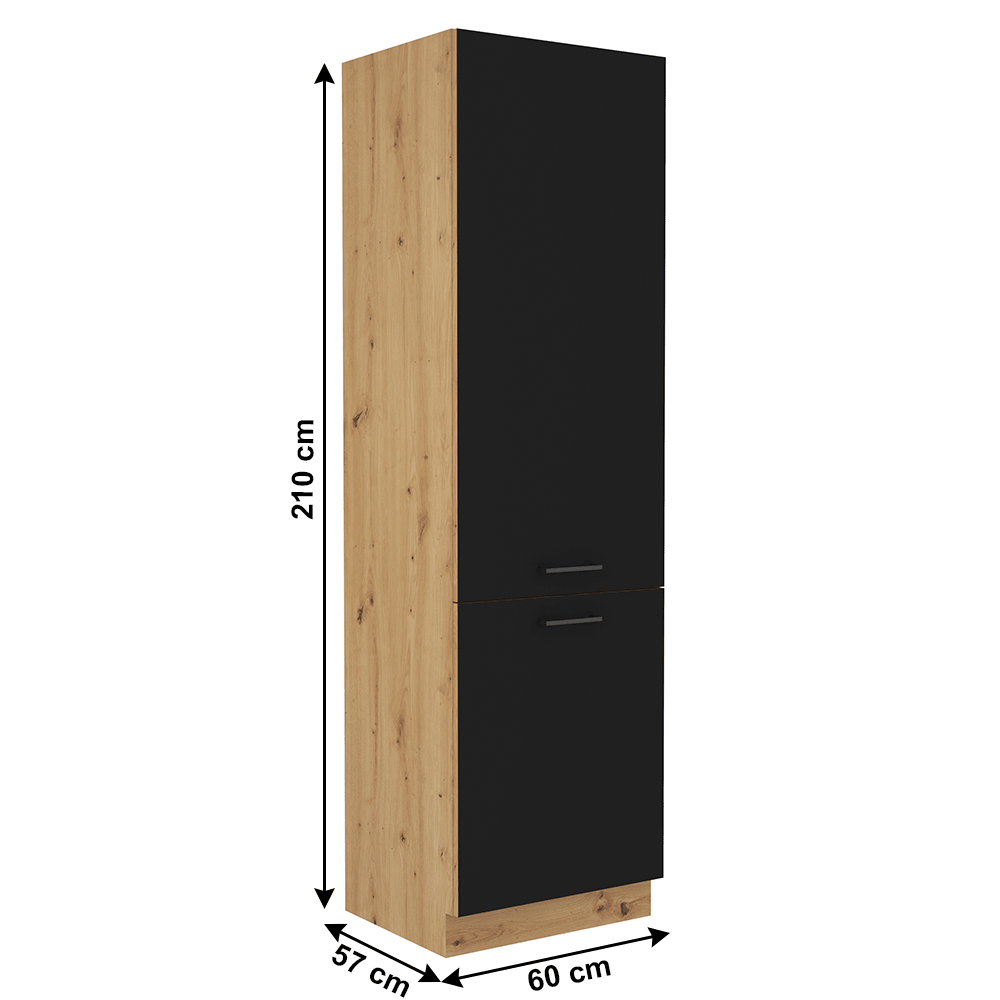 KONDELA Skrinka na vstavanú chladničku, čierny mat/dub artisan, MONRO 60 LO-210 2F