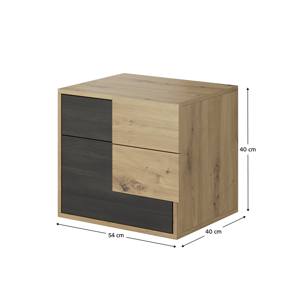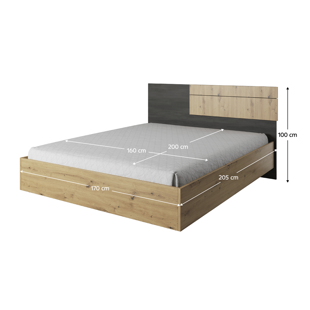 KONDELA Spálňová zostava (skriňa+posteľ+2x nočný stolík), dub artisan/čierna borovica nórska, BAFRA