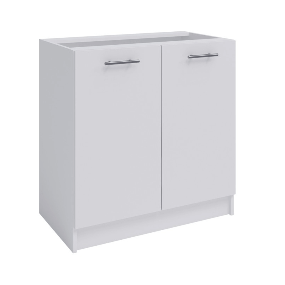 Spodná dvojdverová skrinka FABIANA Materiálové prevedenie: DTD laminovaná drevotrieskaFarebné prevedenie: bielaRozmery (ŠxHxV): 80x46x82 cmHrúbka materiálu: 16 mm Dodávané v demonte.Skrinky základnej zostavy sú dodávané vrátane pracovnej dosky, drezová skrinka je dodávaná bez pracovnej dosky. Sektorové skrinky sú dodávané bez pracovnej dosky.Možnosť zakúpenia pracovnej dosky Fabiana Metalic brown sivá s hrúbkou 2,8 cm,šírkou 60 cm a cenou za bm 49 Eur. Možnosť dokúpenia univerzálneho Ľ/P drezu LAY ON.